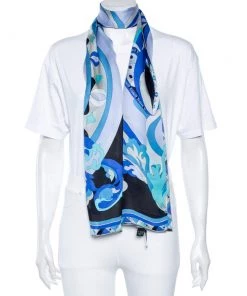 Emilio Pucci Blue Abstract Print Silk Scarf For Women