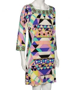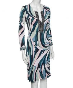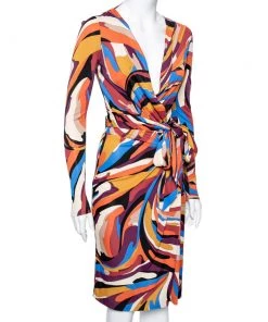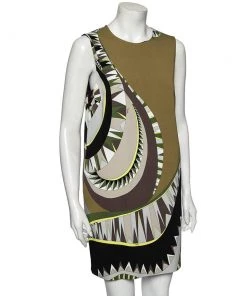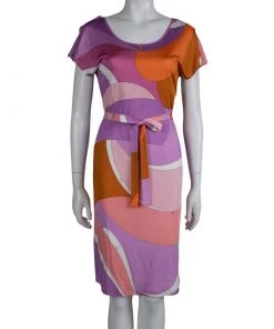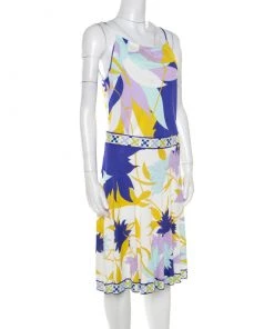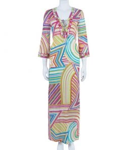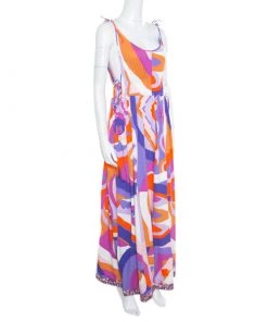 Emilio Pucci Multicolor Abstract Printed Cotton Tie Up Detail Sleeveless Maxi Dress L For Women