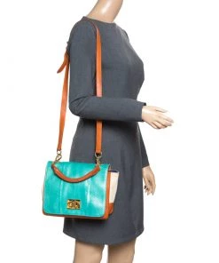 Emilio Pucci Tri Color Leather Pilot Top Handle Bag For Women