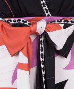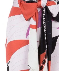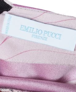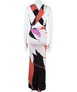 Emilio Pucci is adored for its distinctly cut dresses and this dress is no difference. Displaying a feminine and subtly retro-inspired abstract print, it features a halter neck with a plunge v-neck front, a pretty bow and crossing straps at the back. The fabric moves and drapes beautifully displaying a subtle flair on the skirt.