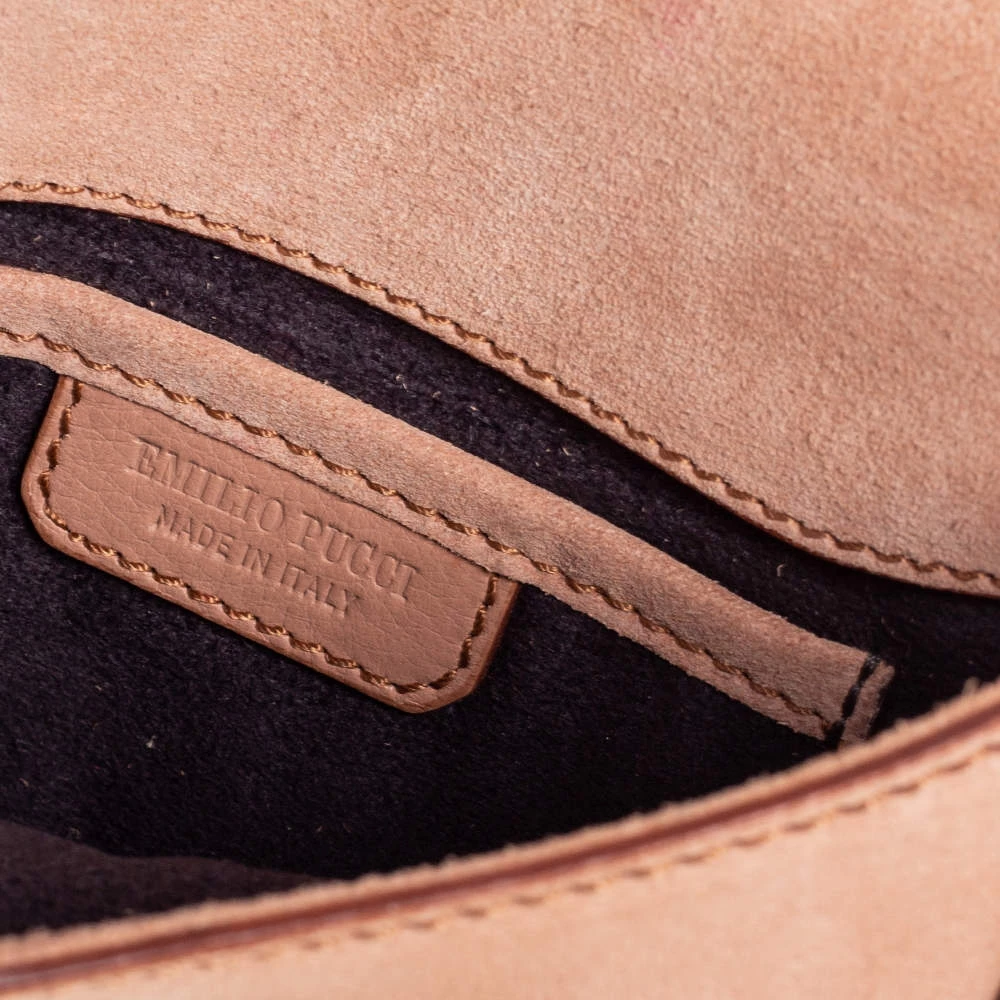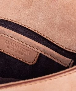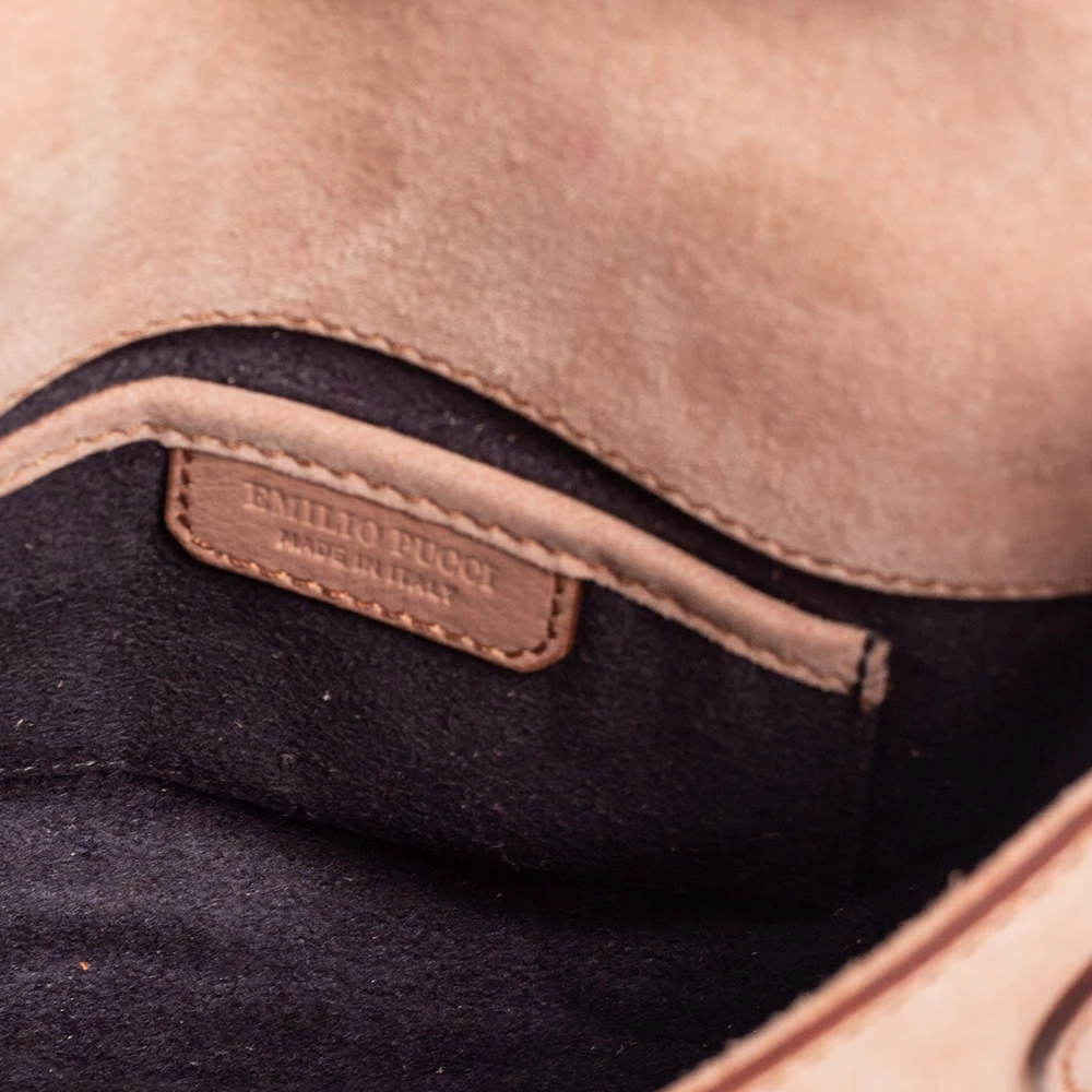 This lovely crossbody bag by Emilio Pucci will lend a stylish accent to your look of the day. Made of suede and leather, it features a metal-detailed flap closure, suede-lined interior, and shoulder strap.