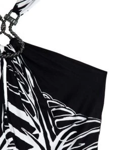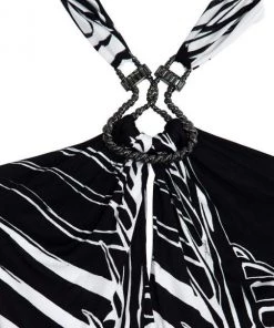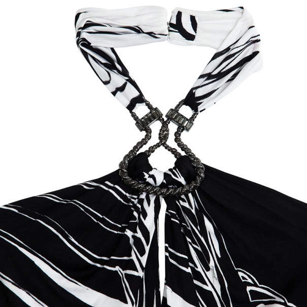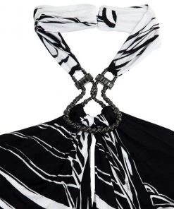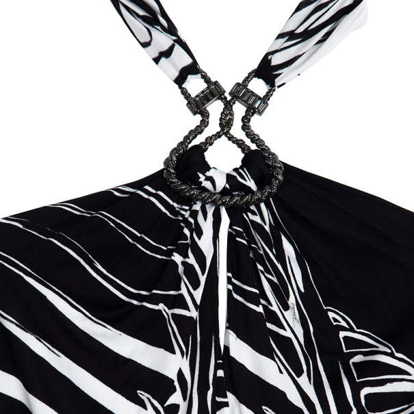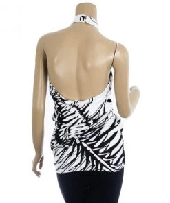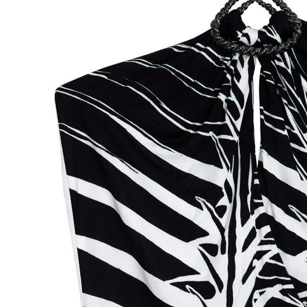 Inspired by the 70’s psychedelic print, match this Emilio Pucci bianco nero top with black tights and heels for a chic ensemble. The halter neckline with an embellished buckle makes it very attractive.Original Retail Price: US $1602