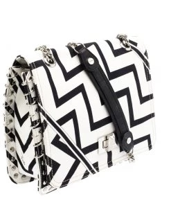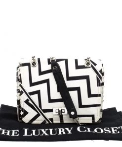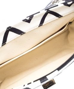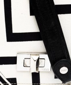 Charm your way through every gathering by swinging this flap bag from Emilio Pucci. Crafted from canvas, the bag has a black and white exterior and comes with a flap that has a turn lock. It carries a spacious interior that will easily hold all your essentials and the bag is complete with a chain-leather link.