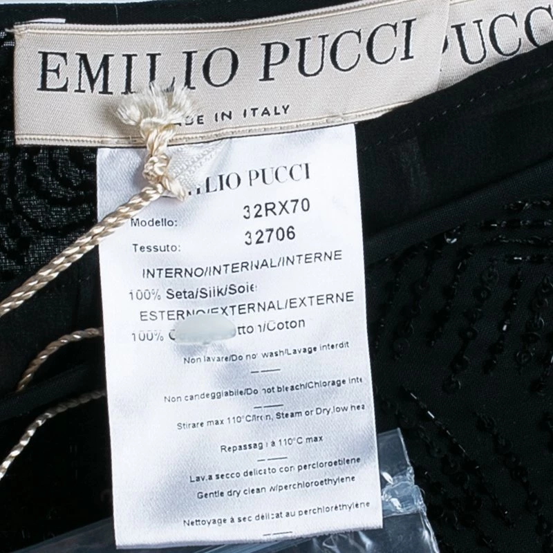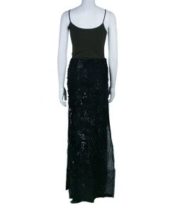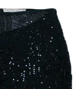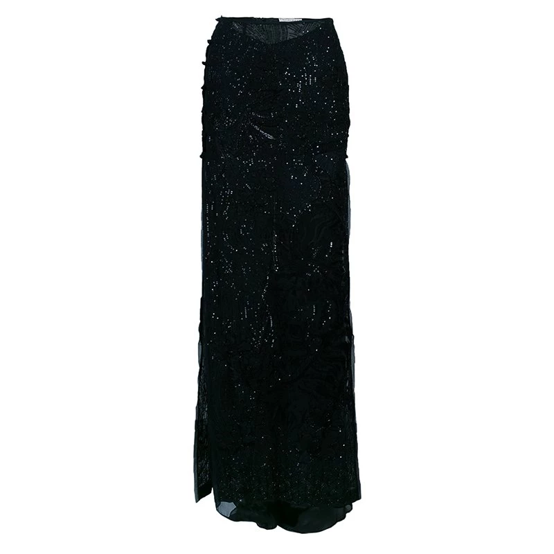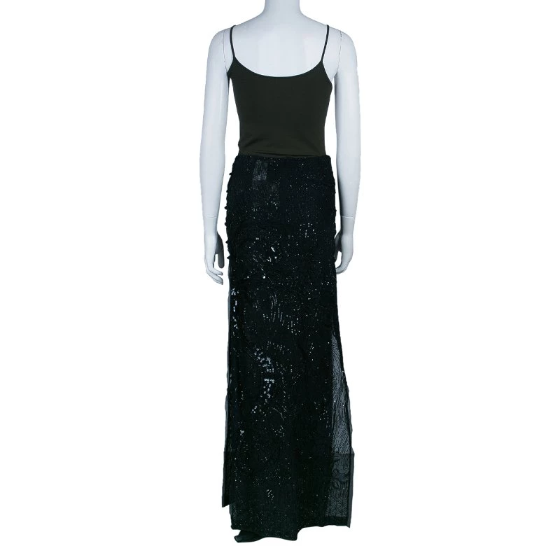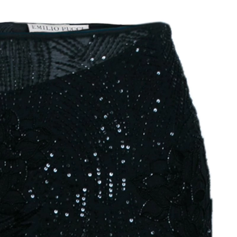 You are sure to fall in love with this black maxi skirt from the house of Emilio Pucci. It features a beaded exterior over a cotton fabric. With a floor kissing length and an elongated figure, the skirt looks elegant!