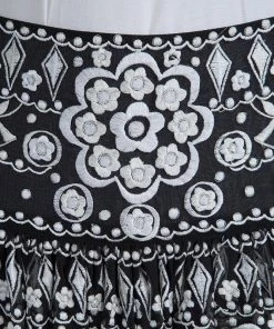 Can something trendy be comfortable too? Yes- says this silk maxi skirt designed by Emilio Pucci. This silk skirt in black comes with graceful embroidered design all over. With gathered detailing at the waist, the skirt comes with a concealed zip closure on one side.