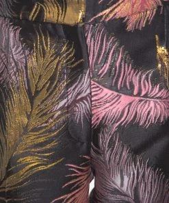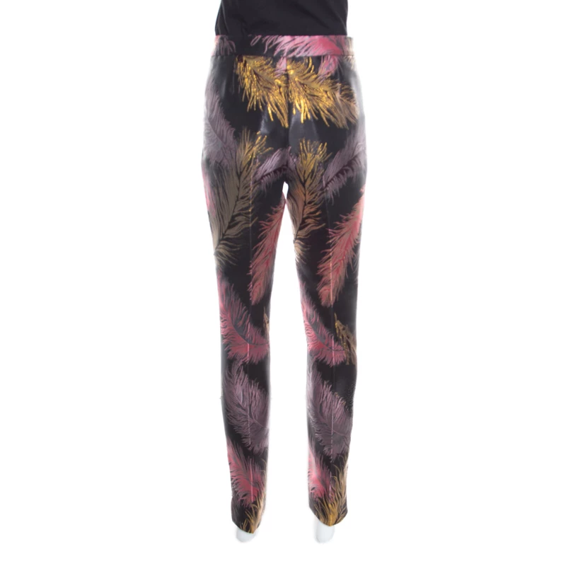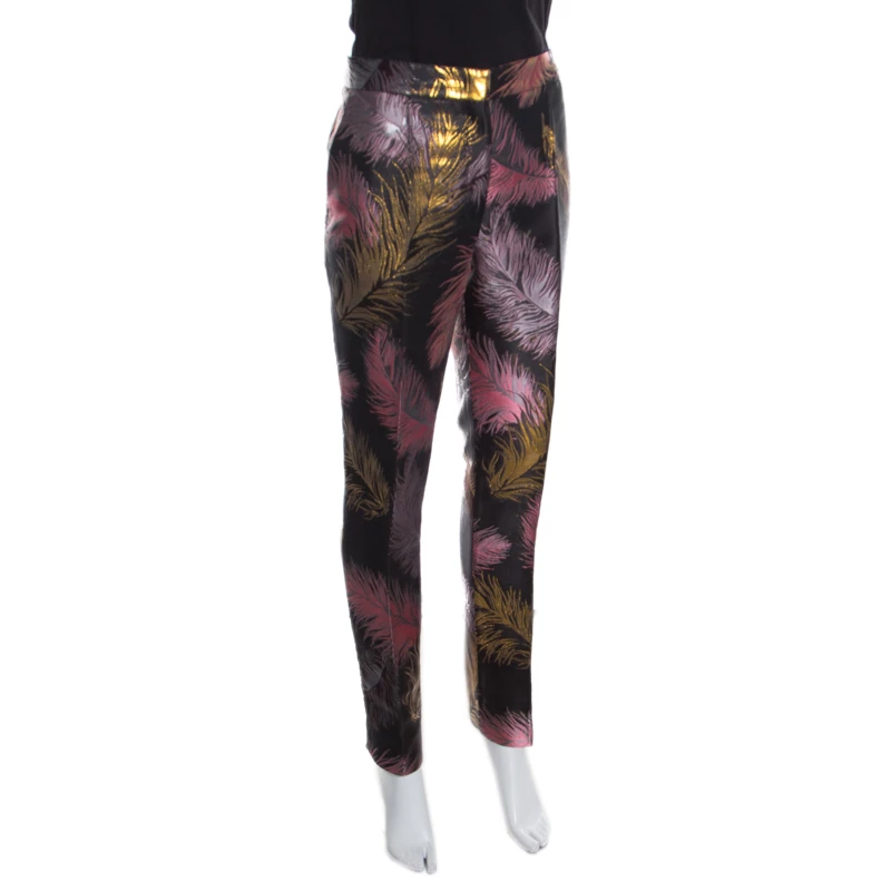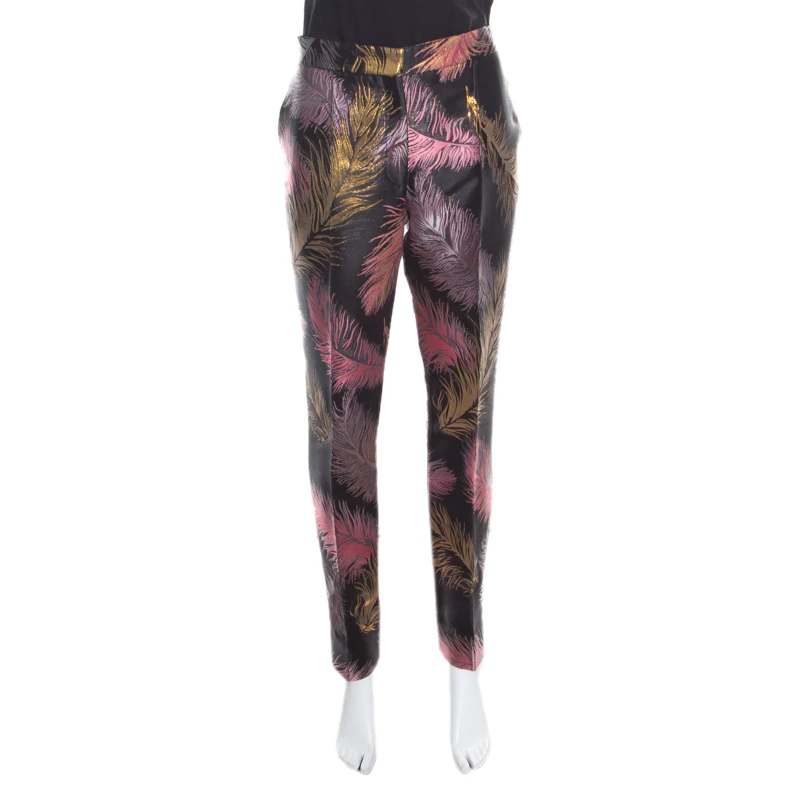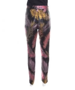 These black pants from Emilio Pucci are so stunning, you’ll instantly fall in love with them! They are made of a polyester blend and feature a beautiful feather jacquard pattern all over them. They come equipped with two pockets and a zip closure. Pair them with asymmetrical tops and metallic pumps for your special outings with friends.