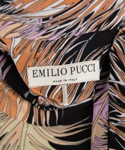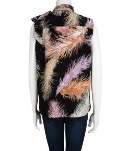 Emilio Pucci brings you this chic blouse that has been made from silk and styled with feather prints all over. It is sleeveless and it carries gorgeous accents like the multi colors and the lovely tie detail on the neck. This blouse will look splendid when you pair it with a high-waist tulle skirt and gold stilettos.
