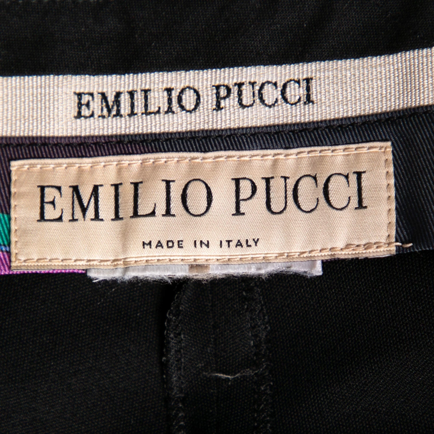 The straight silhouette of this pair of Emilio Pucci trousers will offer you a chic appeal. Made from quality fabric, it is secured by a front button closure and will perfectly complement a solid top.