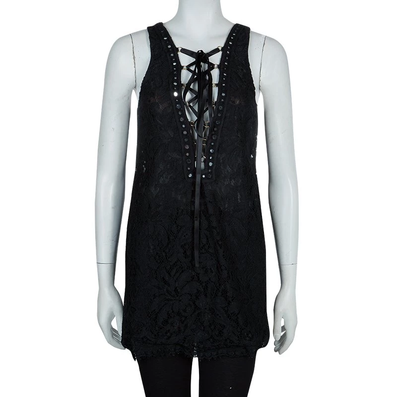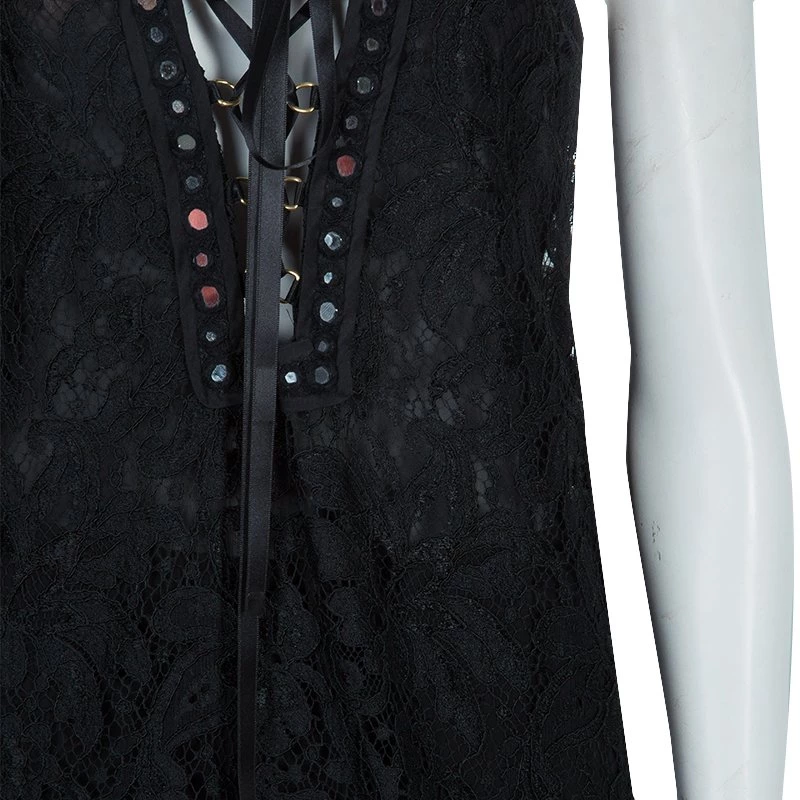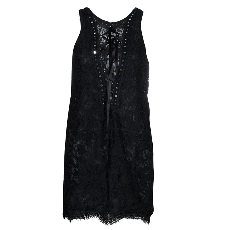 The wait to wardrobe a stunning and astounding dress to your collection ends here with this gorgeous Emilio Pucci sleeveless dress. Crafted from viscose, polyamide and silk blend, this dress is adorned with impressive mirrorwork embellishments and counters tie-up details on the front. It is accented with gold-tone hardware.