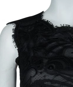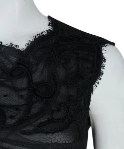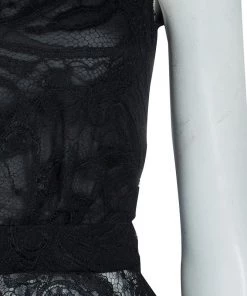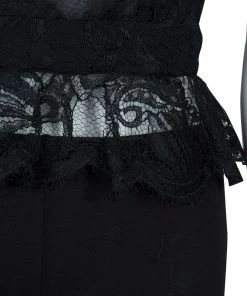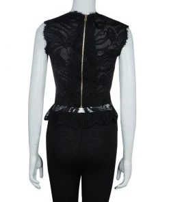 This party perfect peplum sleeveless top tailored by Emilio Pucci will surely win you the title of a fashionista. Crafted from viscose, nylon, silk and elastane blend, it is adorned with impressive lace details and features a matchless round neckline to count on. This top profiles a rear zipper.