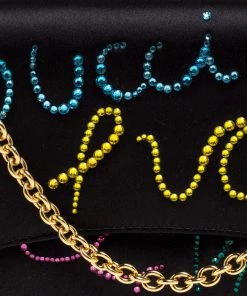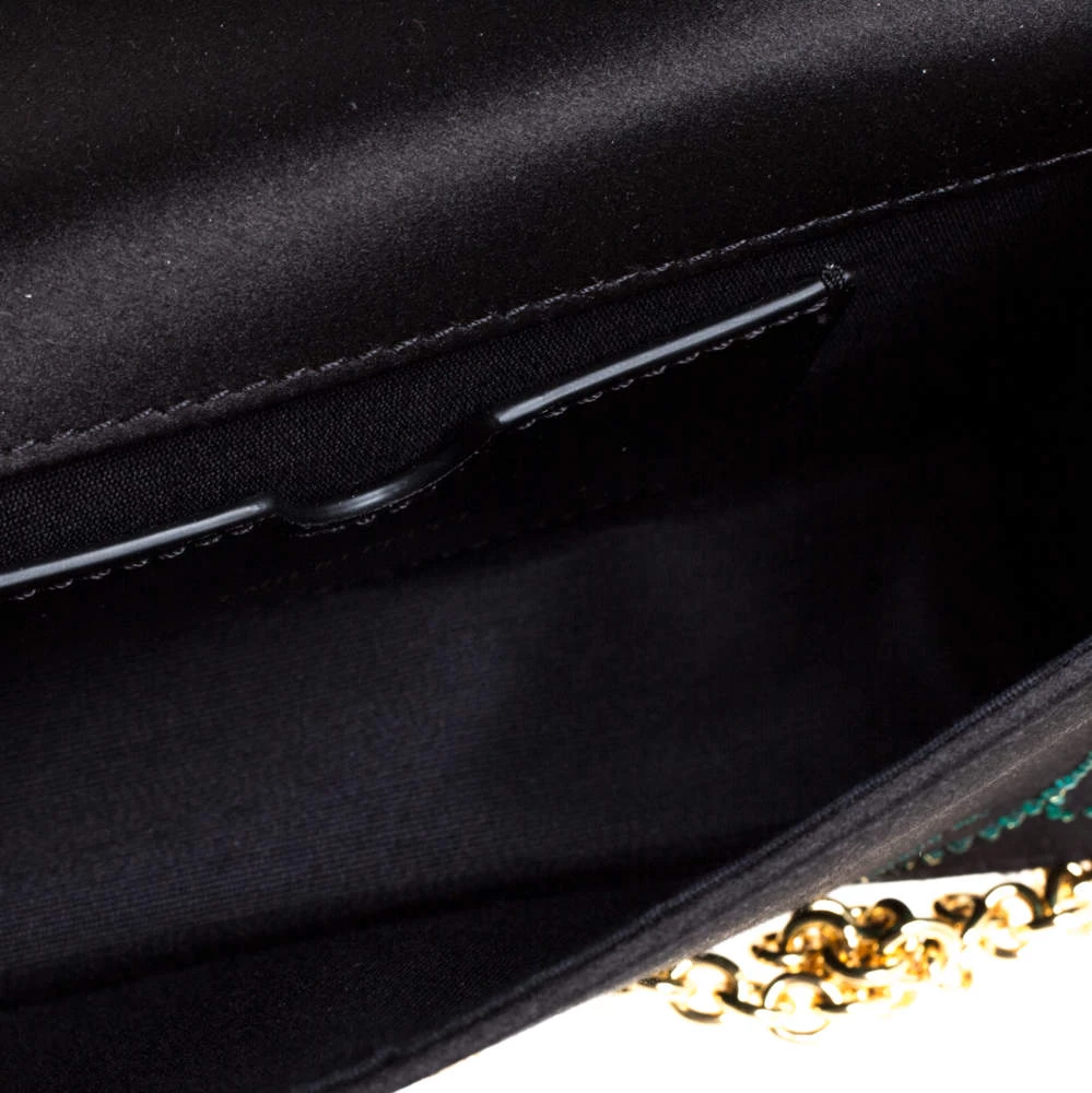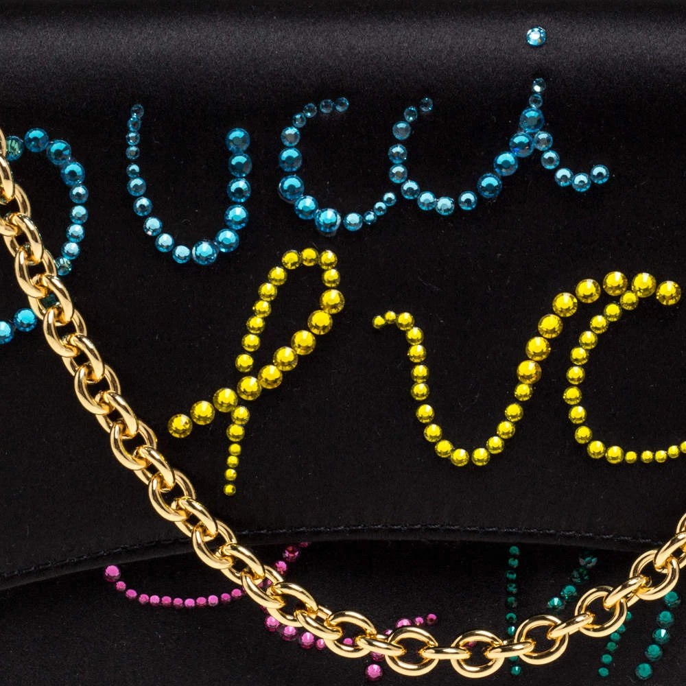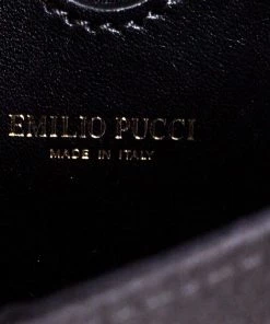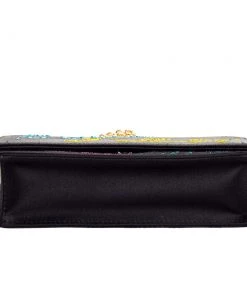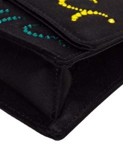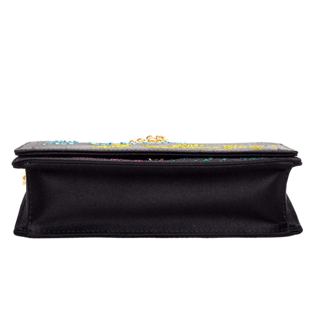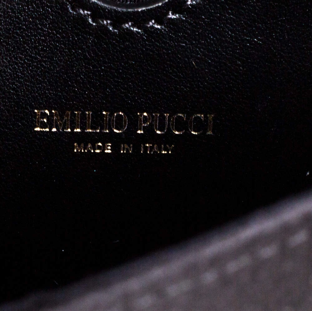 This luxurious and stylish Box bag from Emilio Pucci is a treat to our eyes! The extravagant brand offers you a bag that has been crafted in Italy and is made from black satin. It is decorated with crystal embellishments. A front flap secures the insides of the bag. The luxurious piece is complete with a shoulder strap, and gold-tone hardware.