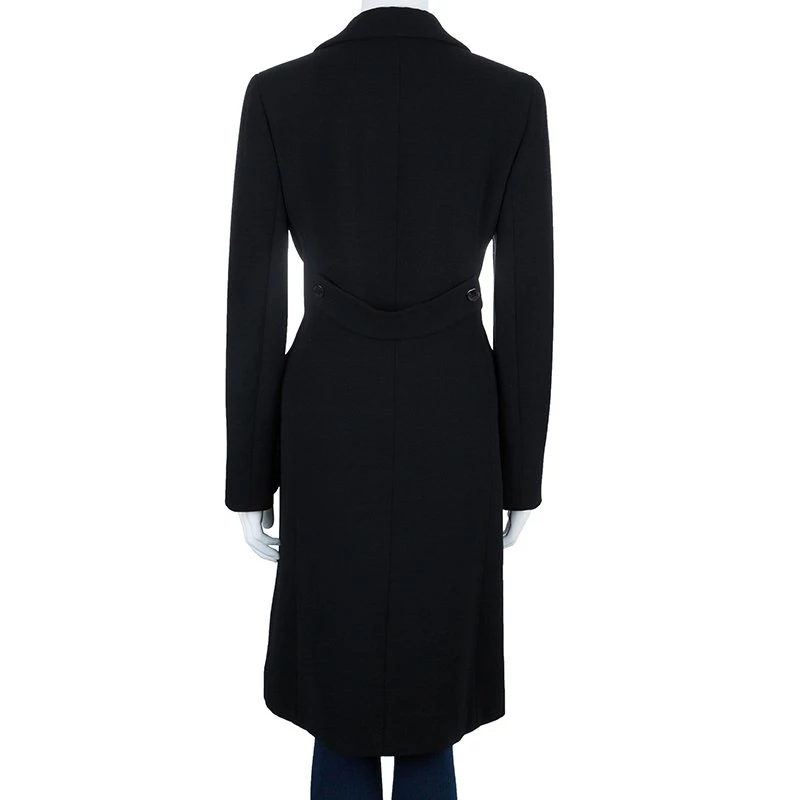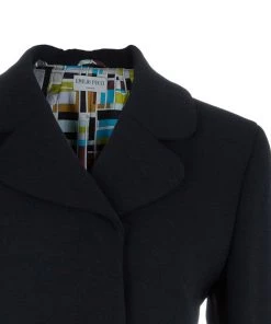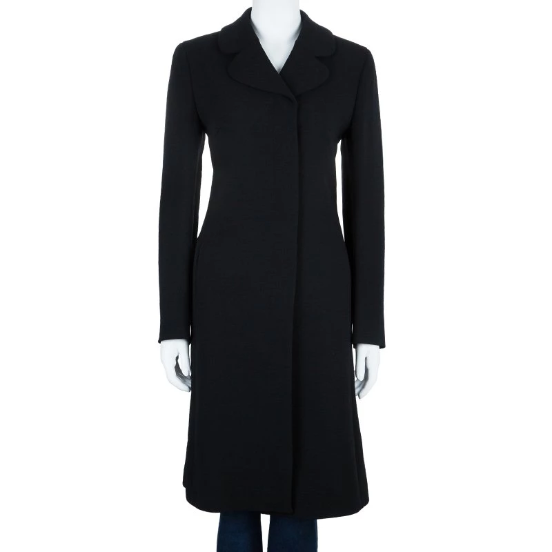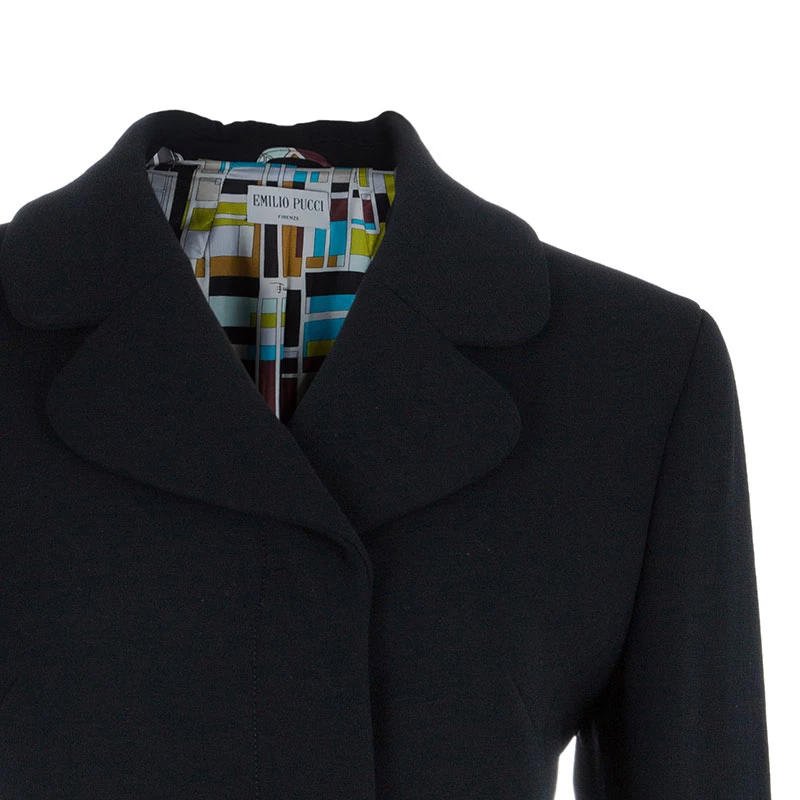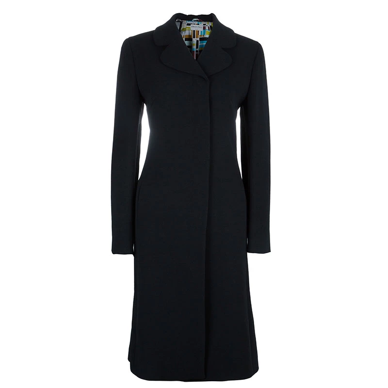 This Emilio Pucci coat comes crafted in black wool. With a classic long cut, it features a collared neckline, long sleeves, front closure and two side pockets. It displays a great fitted silhouette and comes with a belt.