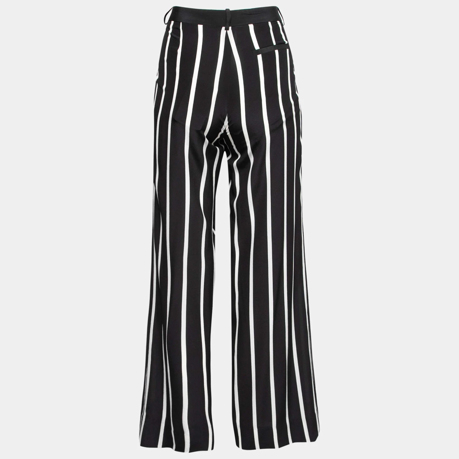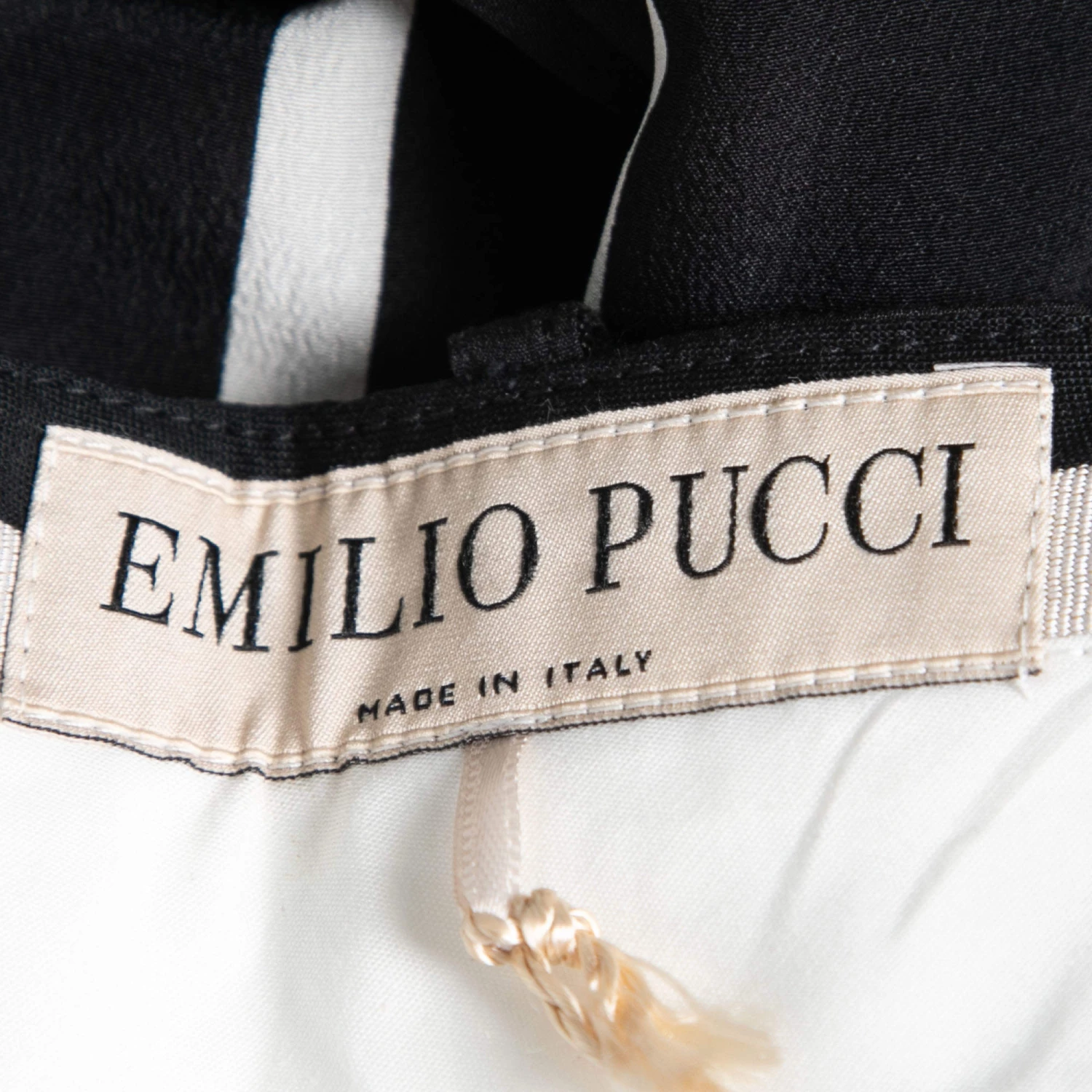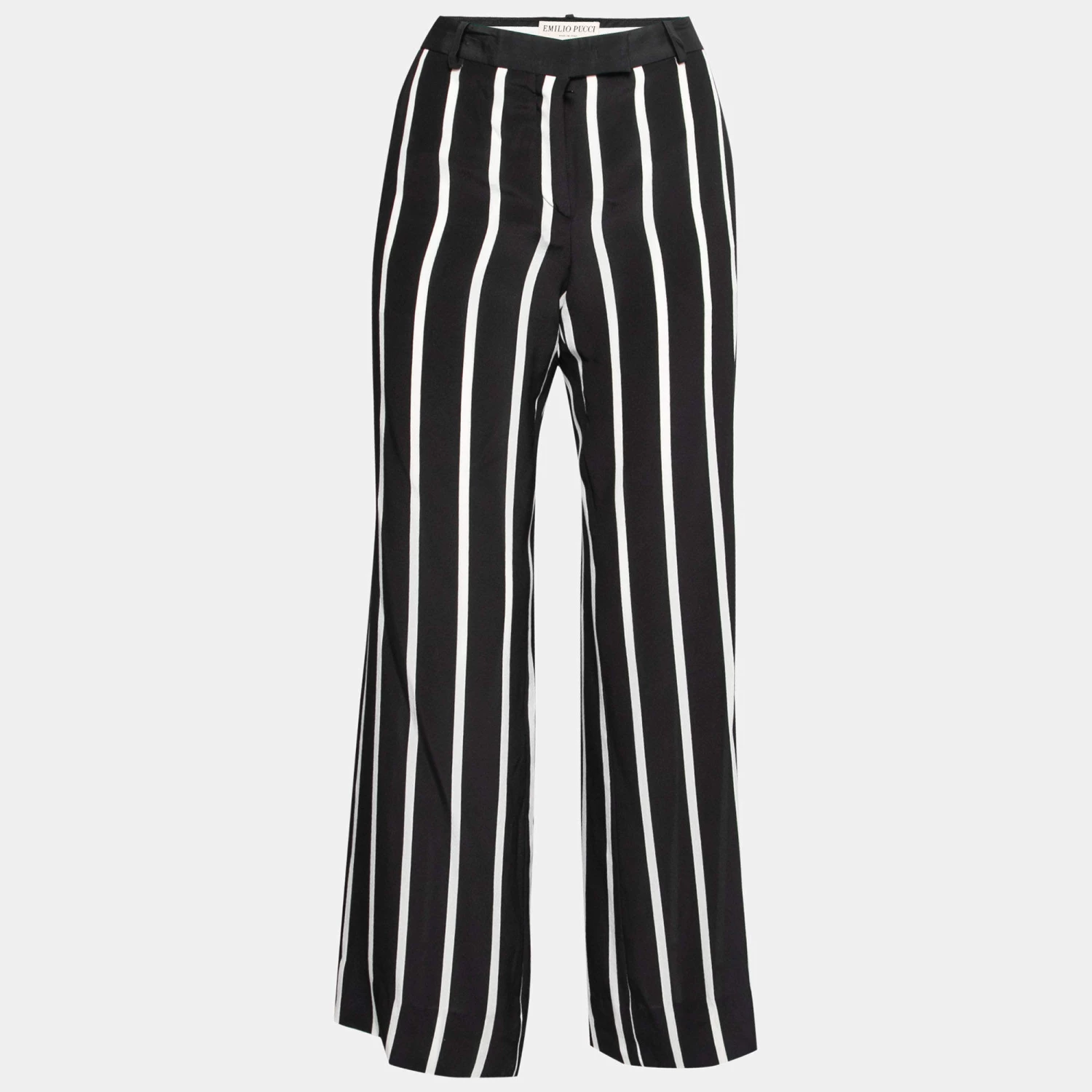 Versatile and comfy, these trousers from Emilio Pucci are definitely closet-essential. Featuring a wide-leg fit, they are tailored using black silk fabric and highlighted with striped detailing. They are equipped with a hook-type closure and accommodate two pockets. Flaunt a stylish look with these stunning trousers.