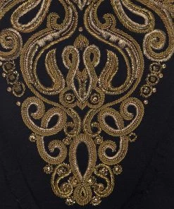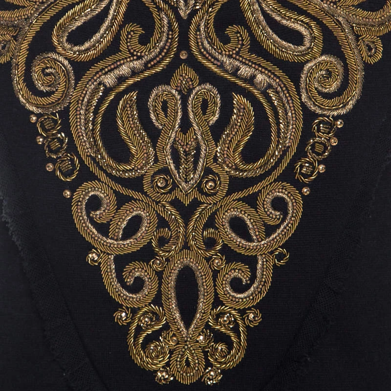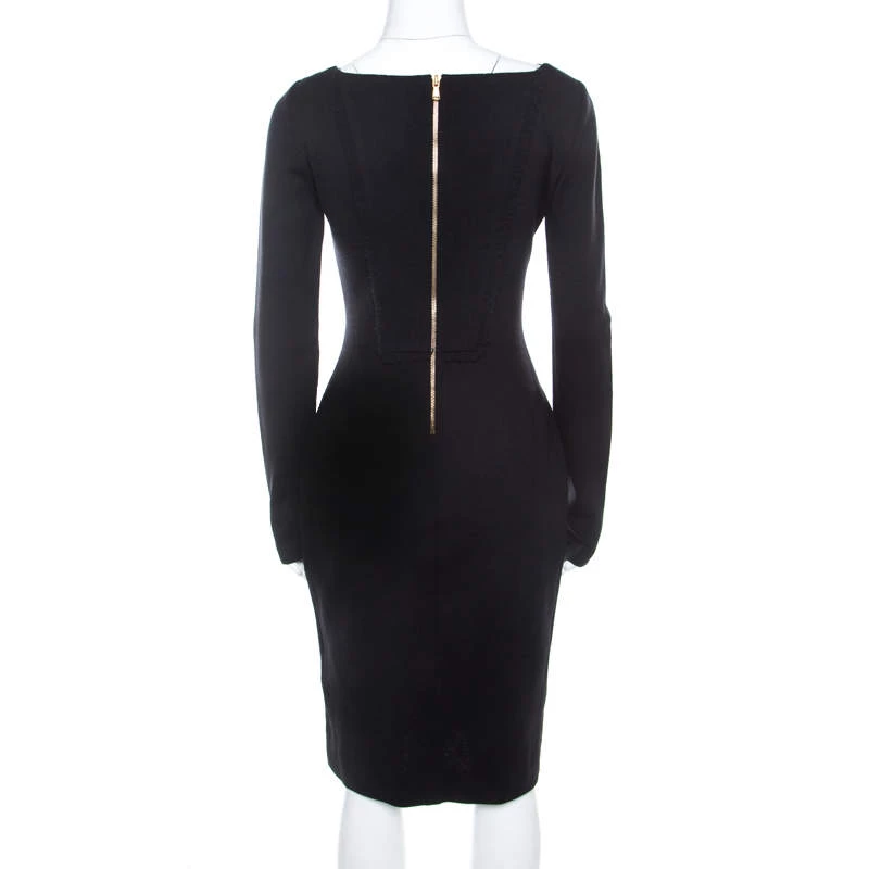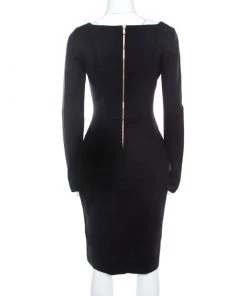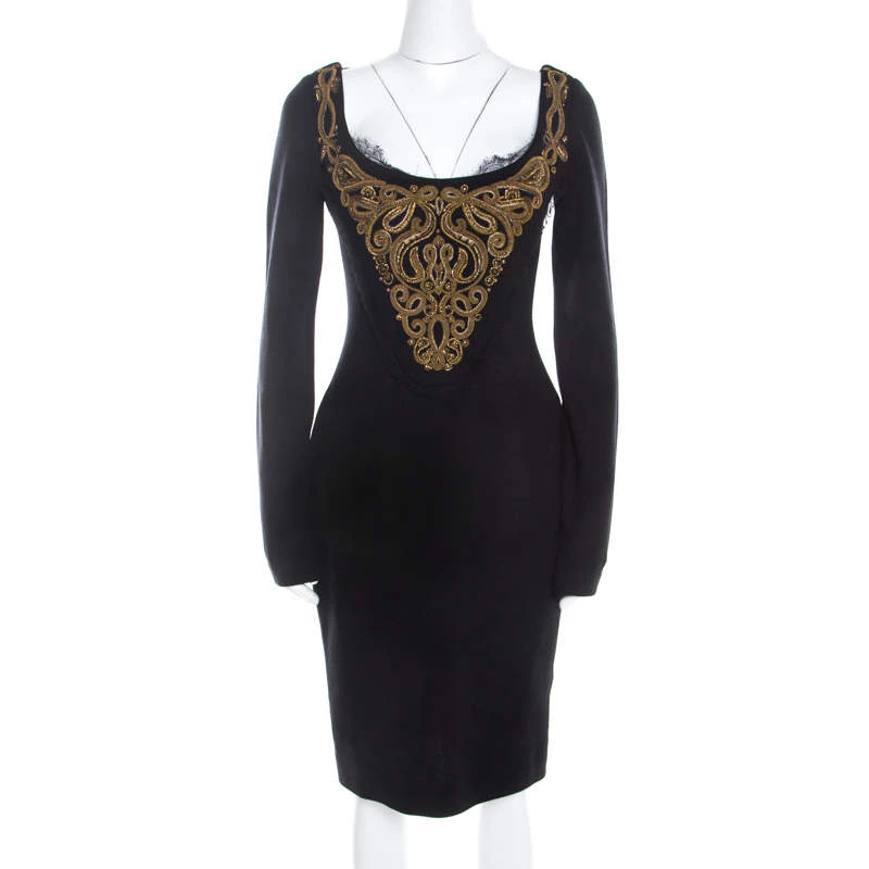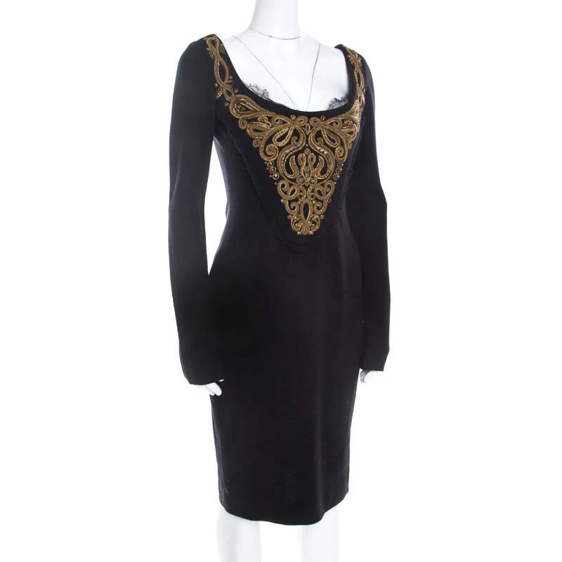 Perfect for parties, this corset dress by Emilio Pucci is sure to make heads turn. Crafted from a wool blend, it features a laudable neckline embellished with golden beads along with a rear zipper. You can win those boundless looks in this gorgeous black dress.
