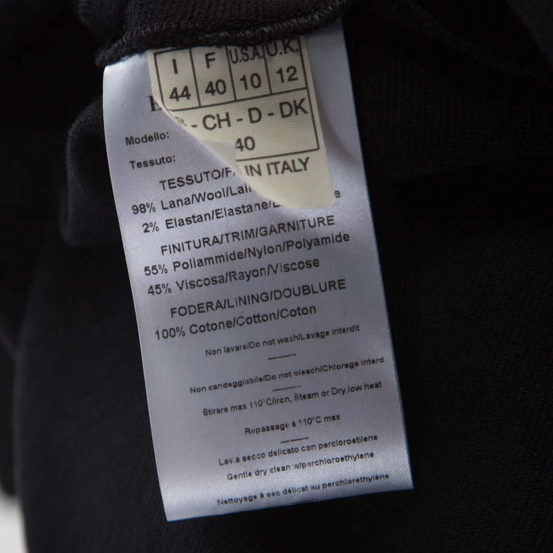 - Fabric: Fabric 1 : 98% Wool, 2% Elastane ; Fabric 2 : 55% Nylon, 45% Viscose ; Lining : 100% Cotton