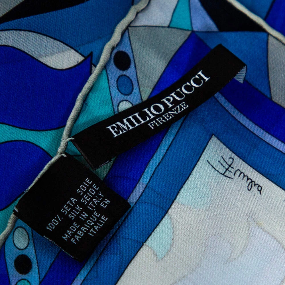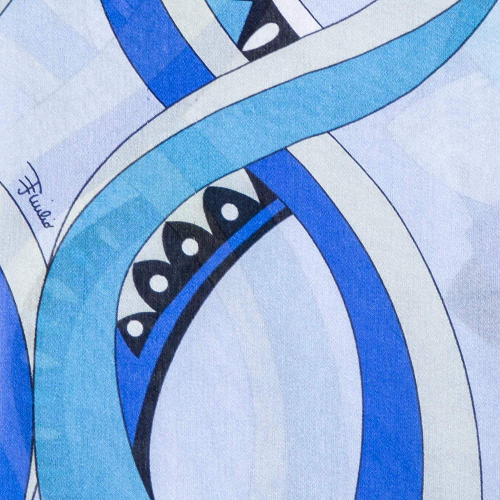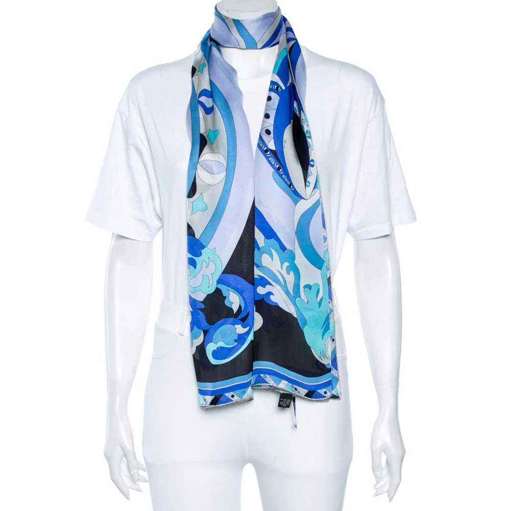 This scarf from Emilio Pucci will make you look chic all day. It is tailored using blue abstract printed silk, which makes it look unique. It measures 176 cm in length. Highlight the look of your attire by wearing this scarf.