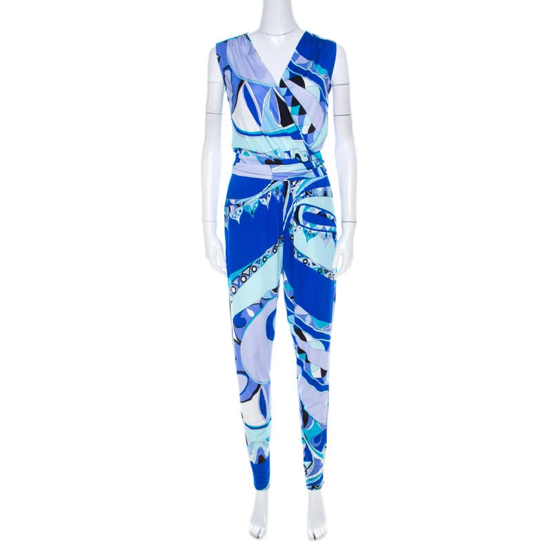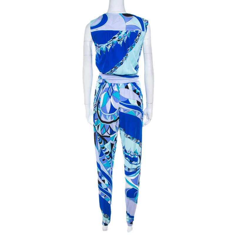 Made from quality viscose, this jumpsuit by Emilio Pucci has been styled with abstract prints all over. It features a V neckline and a zip closure. Style this jumpsuit with heels for an effortless-fashion impression.