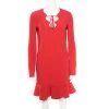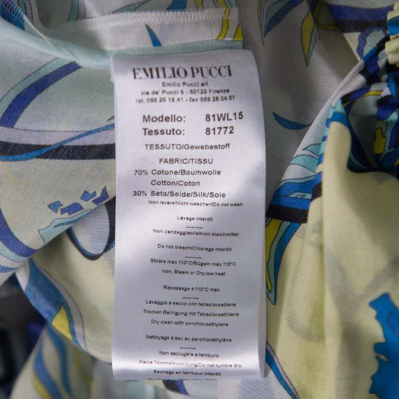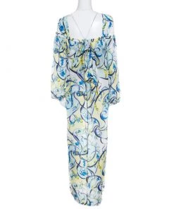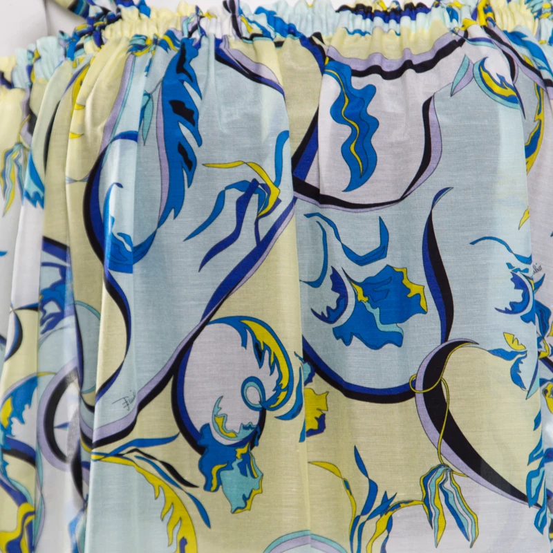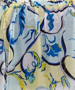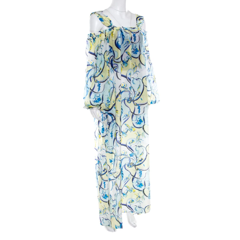 This cold shoulder Emilio Pucci dress promises to make you look nothing less than a diva! The blue and yellow creation is made of a cotton and silk blend and features a lovely print all over it. It flaunts long flared sleeves and a tie detailing at the back. Pair it with pointed stilettoes and diamond stud earrings for a fashionable brunch.