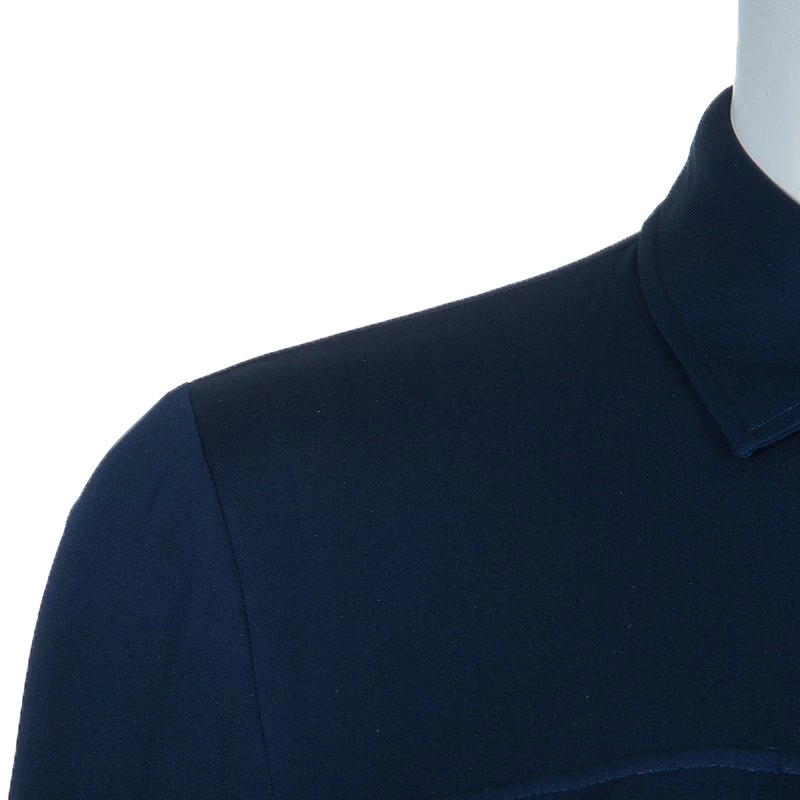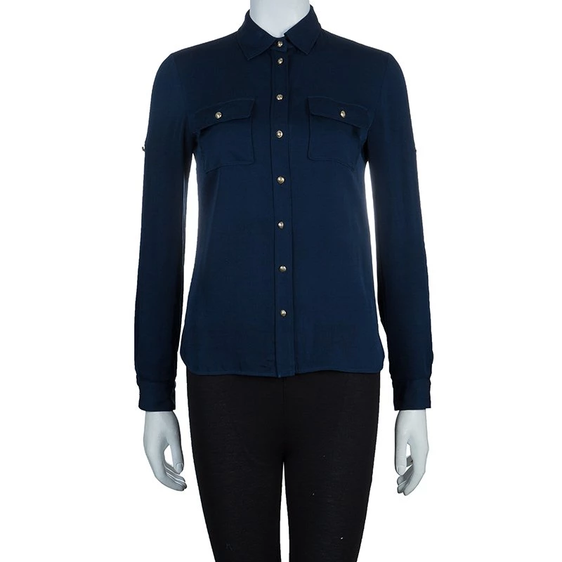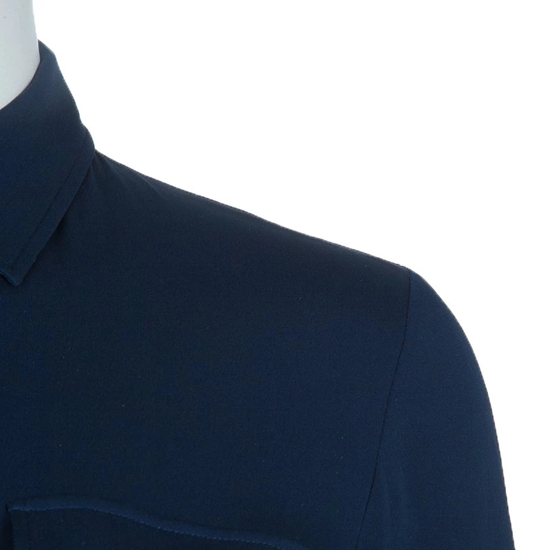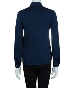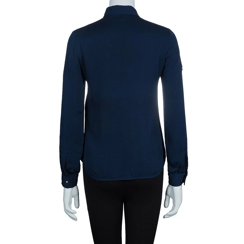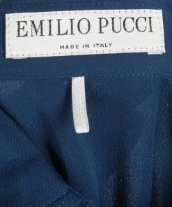 This Emillio Pucci Shirt is calm and soothing! Crafted from 100% blue silk, this long sleeve shirt features a collared neck, gold-tone button down closure on its front and two flap pockets with button closure.