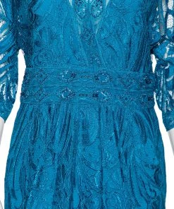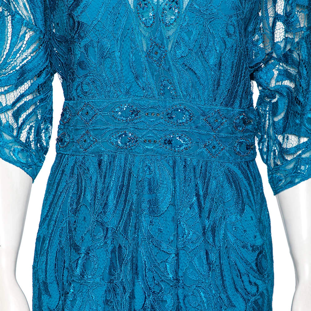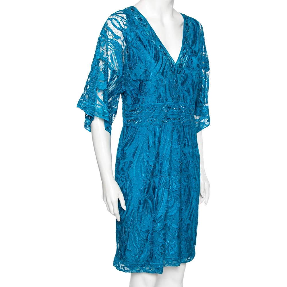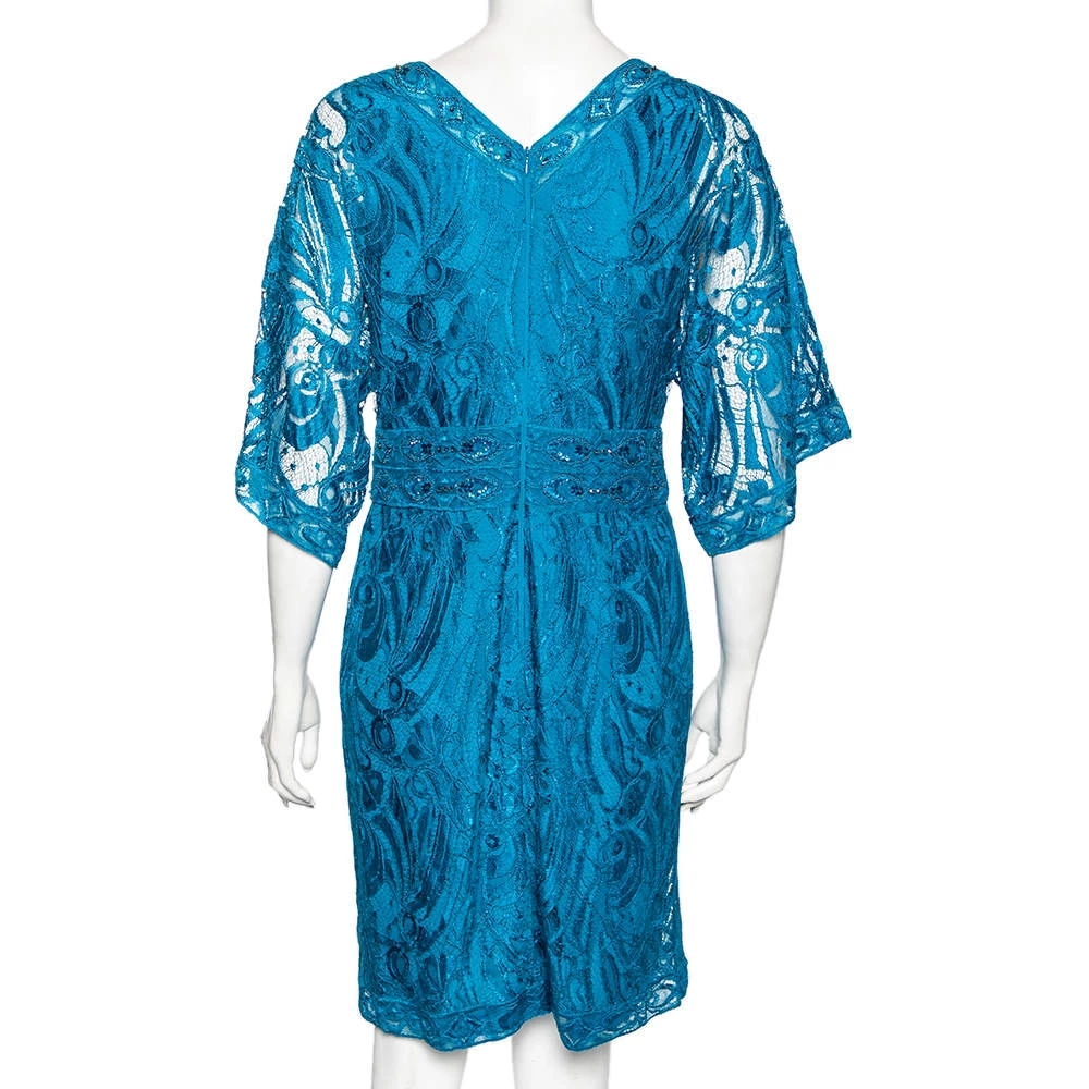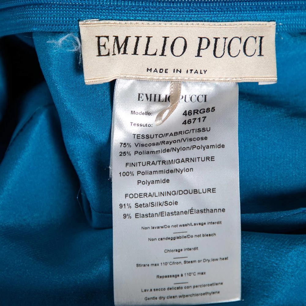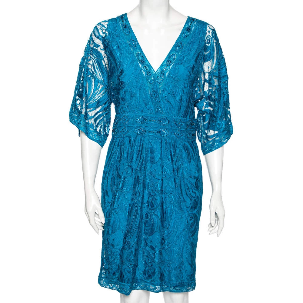 This Emilio Pucci dress is perfect for the next summer party! It flaunts a gorgeous blue color with embellished details. It is finished with a V-neck and stylish sleeves. Wear the lace dress with high heels and a pretty clutch.