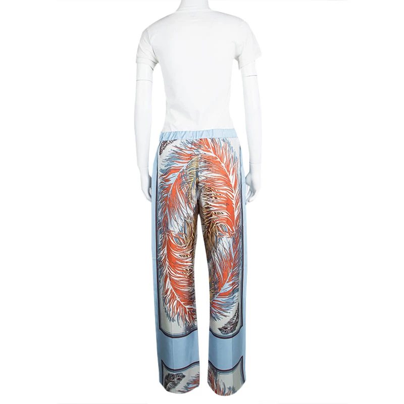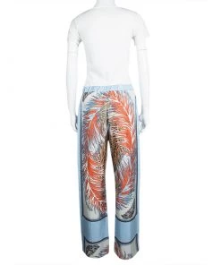 These pants from Emilio Pucci are so comfy and well-tailored, you’ll love flaunting them everywhere. It is made of quality silk and flaunts feather prints all over. The pants carry wide legs and front fastening.