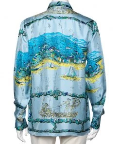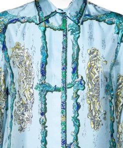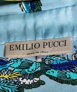 This shirt from the House of Emilio Pucci is a stunning creation you need to own today! It is tailored using blue silk fabric and is accentuated with multicolored prints throughout. It has buttoned closures and long sleeves. Achieve a colorful style as you don this beautiful shirt.