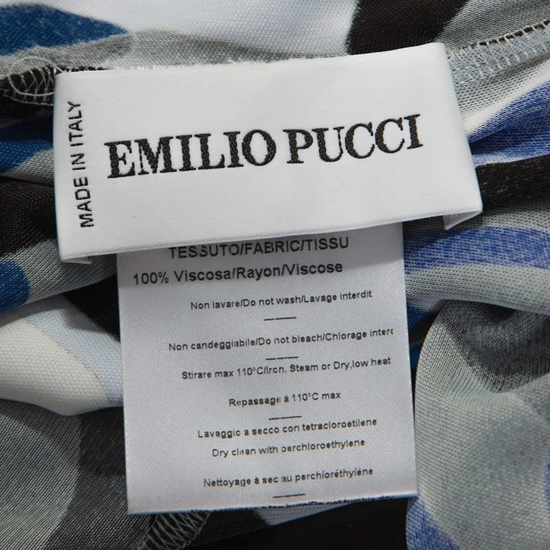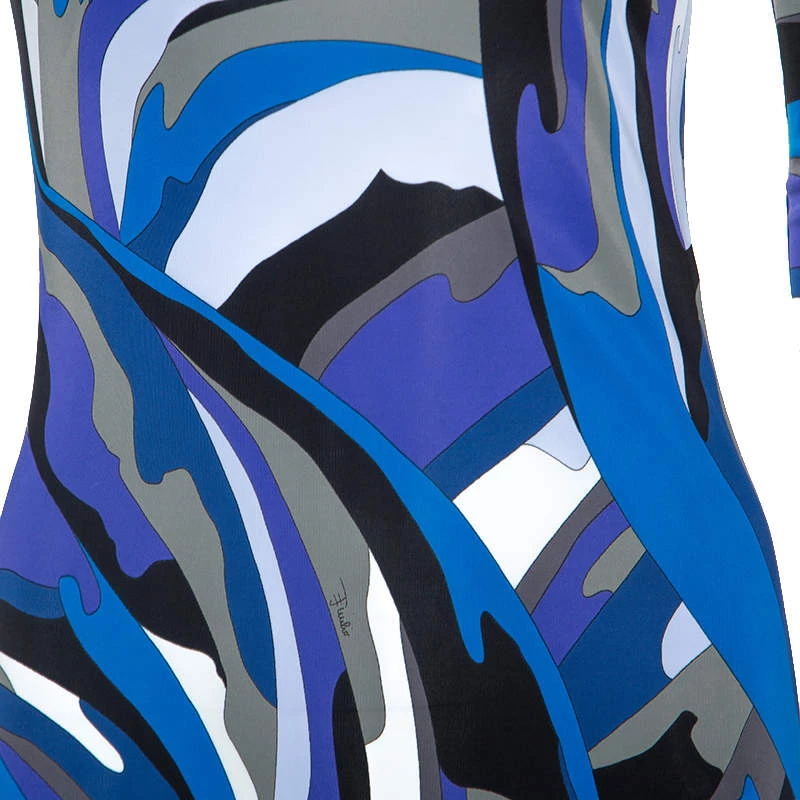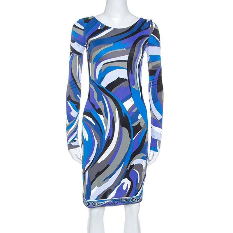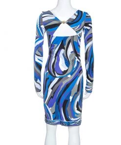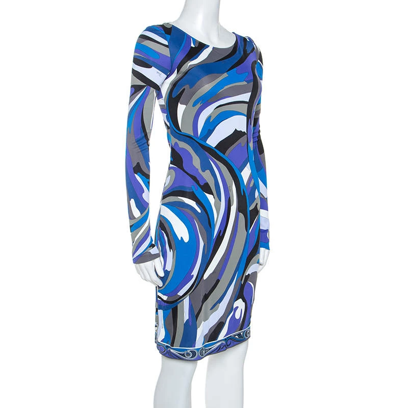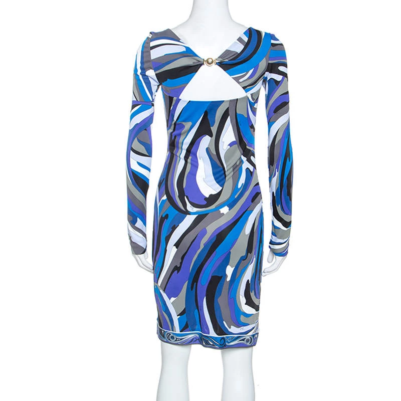 This flattering Emilio Pucci dress will make a great fashion statement. Be the epitome of poise and grace when you effortlessly style this blue dress. It has a flattering silhouette and comes in a stunning print in blue. It features long sleeves and stunning closure detailing on the back.