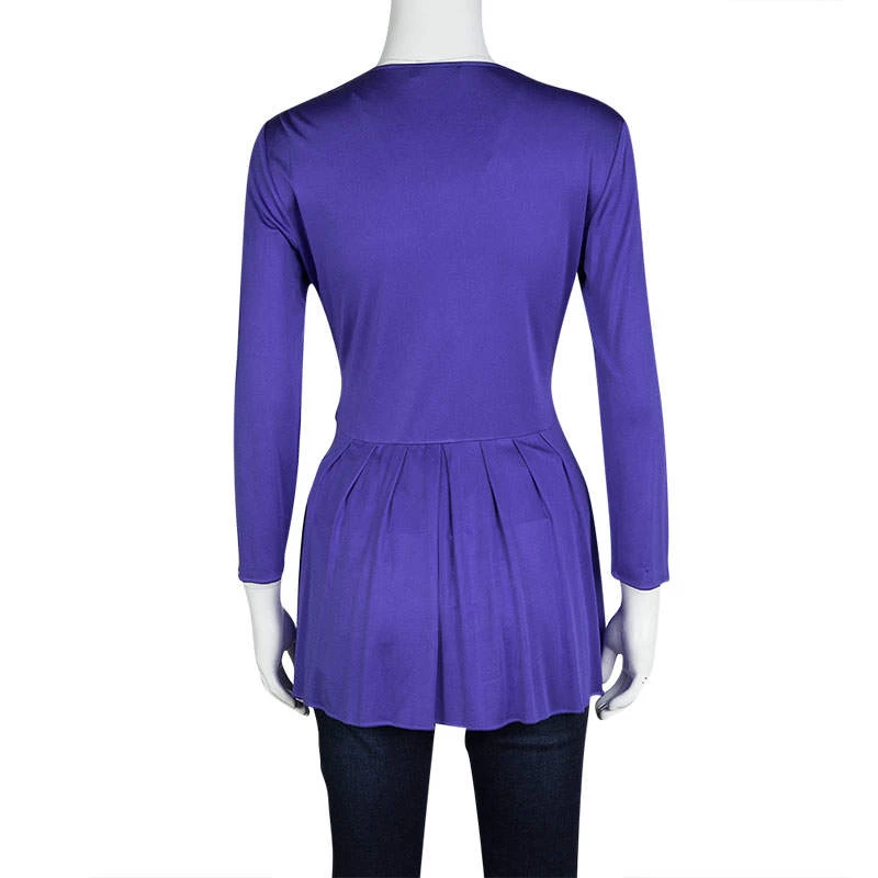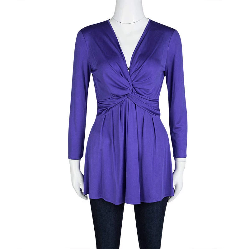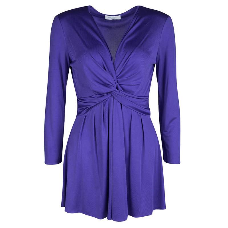 Emilio Pucci’s tunic is cut from a lustrous silk jersey fabric in a gorgeous shade of blue. It features a flattering silhouette with a front twist knot detail and full sleeves. It comes with a deep neckline and pleated toward the hemline. Wear with leggings for a smart look.