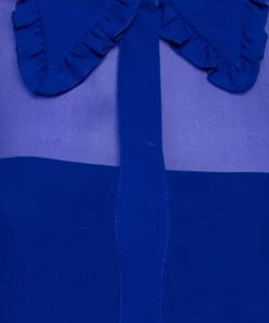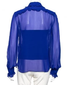 This shirt from the House of Emilio Pucci is a stunning creation you need to own today! It is tailored using blue silk fabric and is accentuated with a ruffled detailed collar. It has a button-front feature and long sleeves. Achieve a chic style as you don this beautiful shirt.