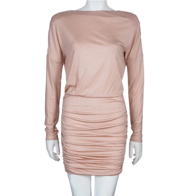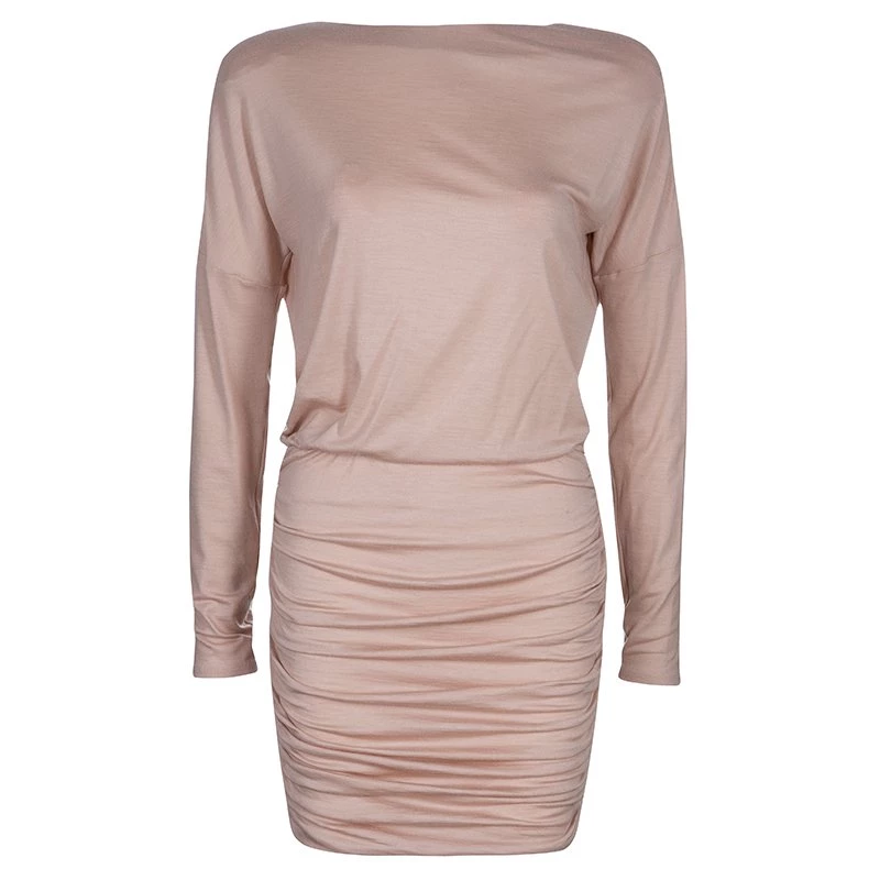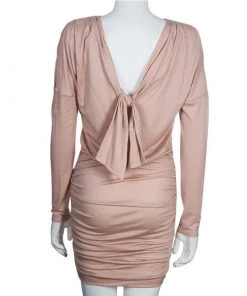 Emilio Pucci shows the sophisticated way to wear this season’s pastel shades with its blush-pink dress. Perfect for day or evening events, it is cut from wool and elastane blend. It comes with a gathered knee-length hemline and a drapey sash tie at the rear. Keep things chic with matching pumps and a boxy clutch.