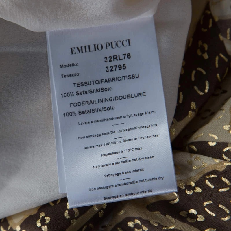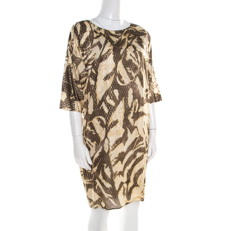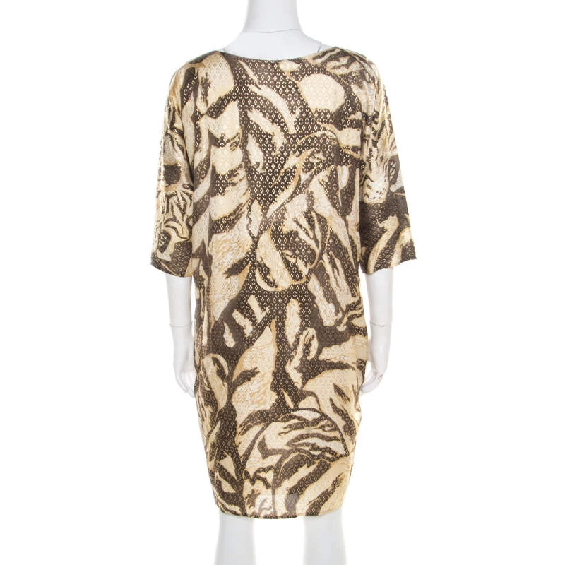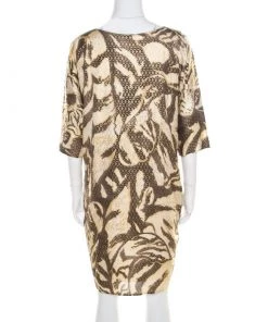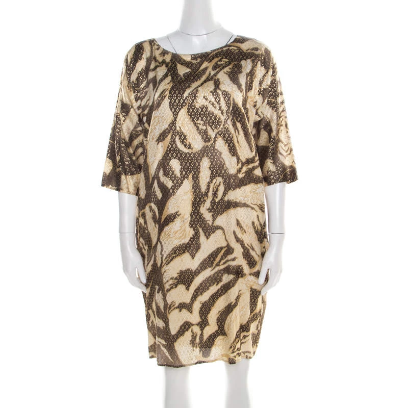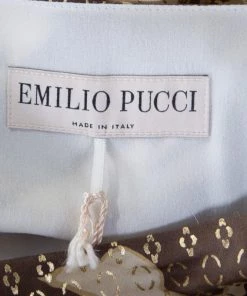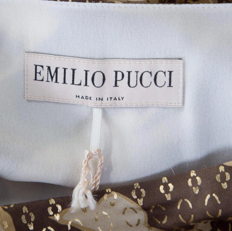 Gorgeously designed to make you look amazing, this Emilio Pucci dress definitely needs to be on your wishlist! The brown and beige creation is made of silk and features a foil print all over. It flaunts a round neckline and long sleeves. Pair it with pointed stilettoes and danglers for making a statement.