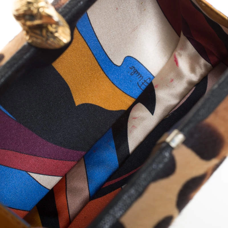 Everybody loves trendy items that come with an edge. From the label of Emilio Pucci comes this gorgeous box clutch that will perfectly complement all your outfits. It has been crafted from calf hair and styled with an eagle head that opens to a satin interior.