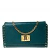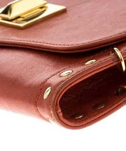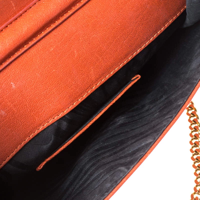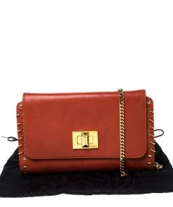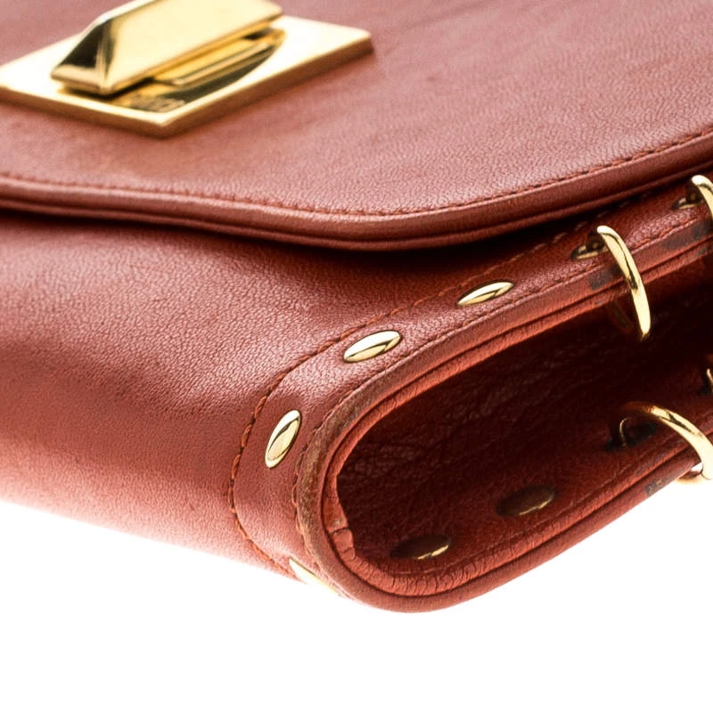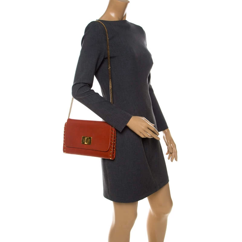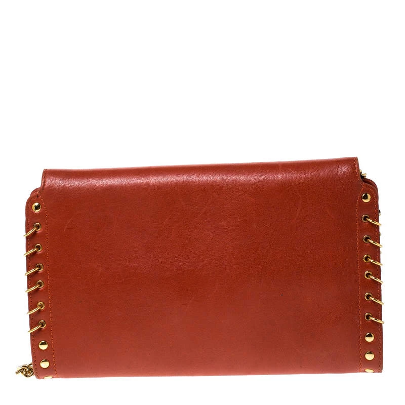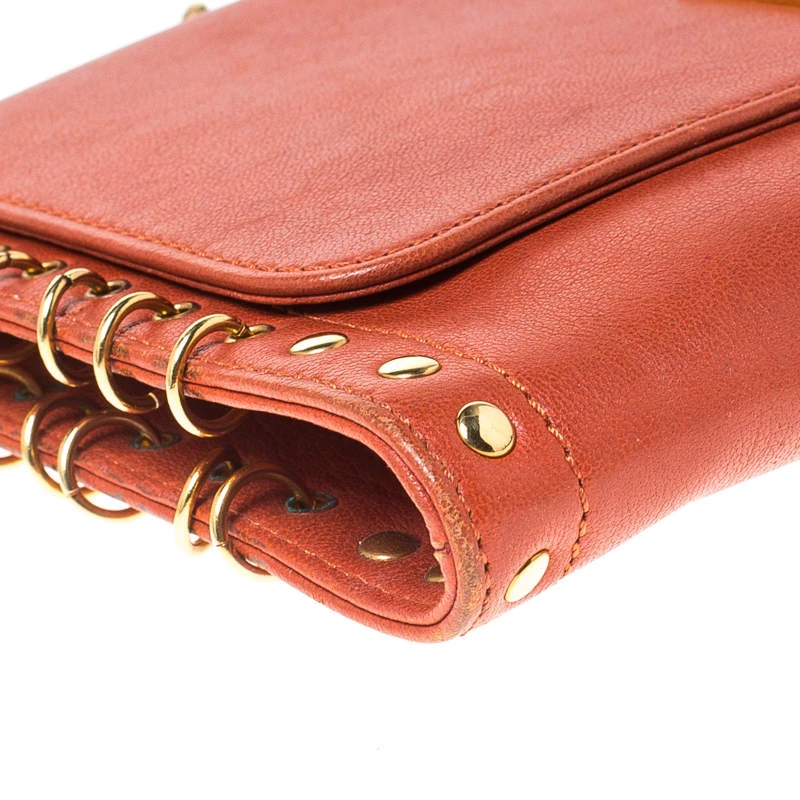 Step out in style by adorning this Ring Accented bag from Emilio Pucci. Crafted from leather, the bag flaunts a front flap with a gold-tone lock closure. The interior is fabric lined and the bag is held by a chain link.