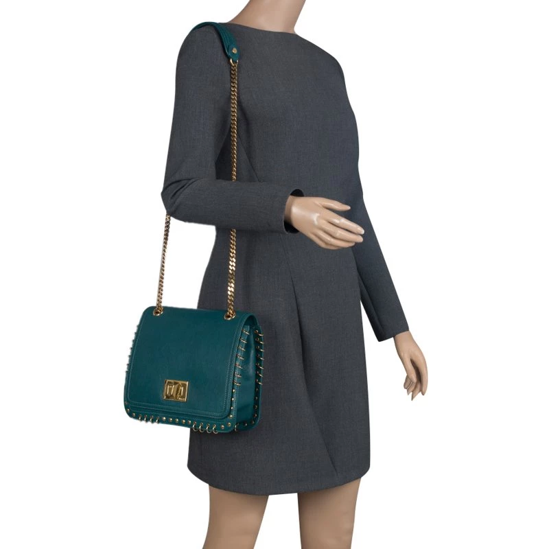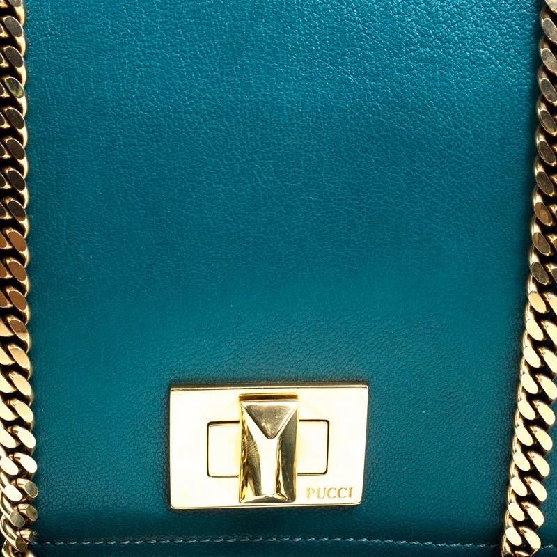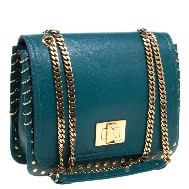 This uber chic Marquise shoulder bag from Emilio Pucci will be a valuable addition to your collection. Crafted from leather the bag features a chain strap with leather shoulder rest and gold tone studs and ring detailing on the exterior. The turn lock closure opens to a nylon lined interior that will fit all your party essentials.
