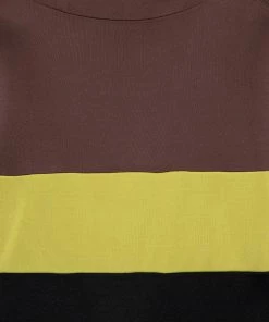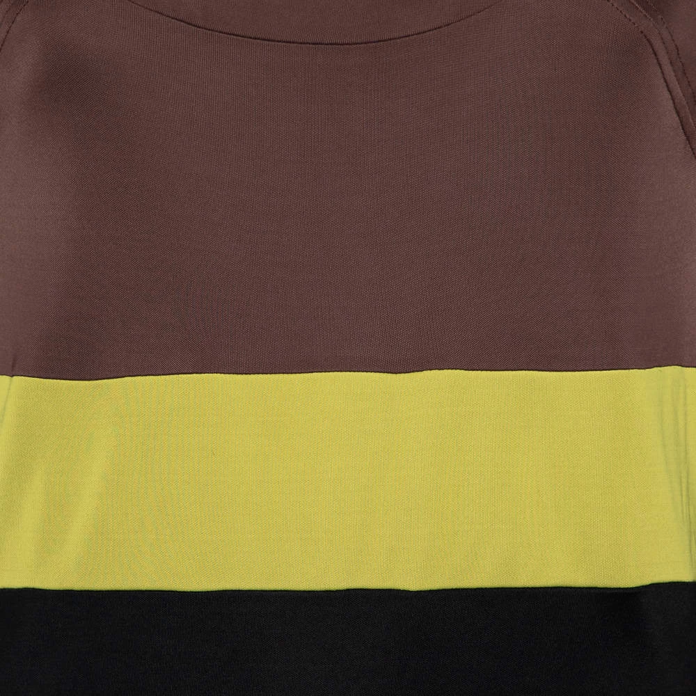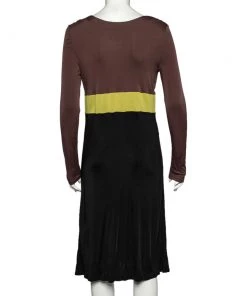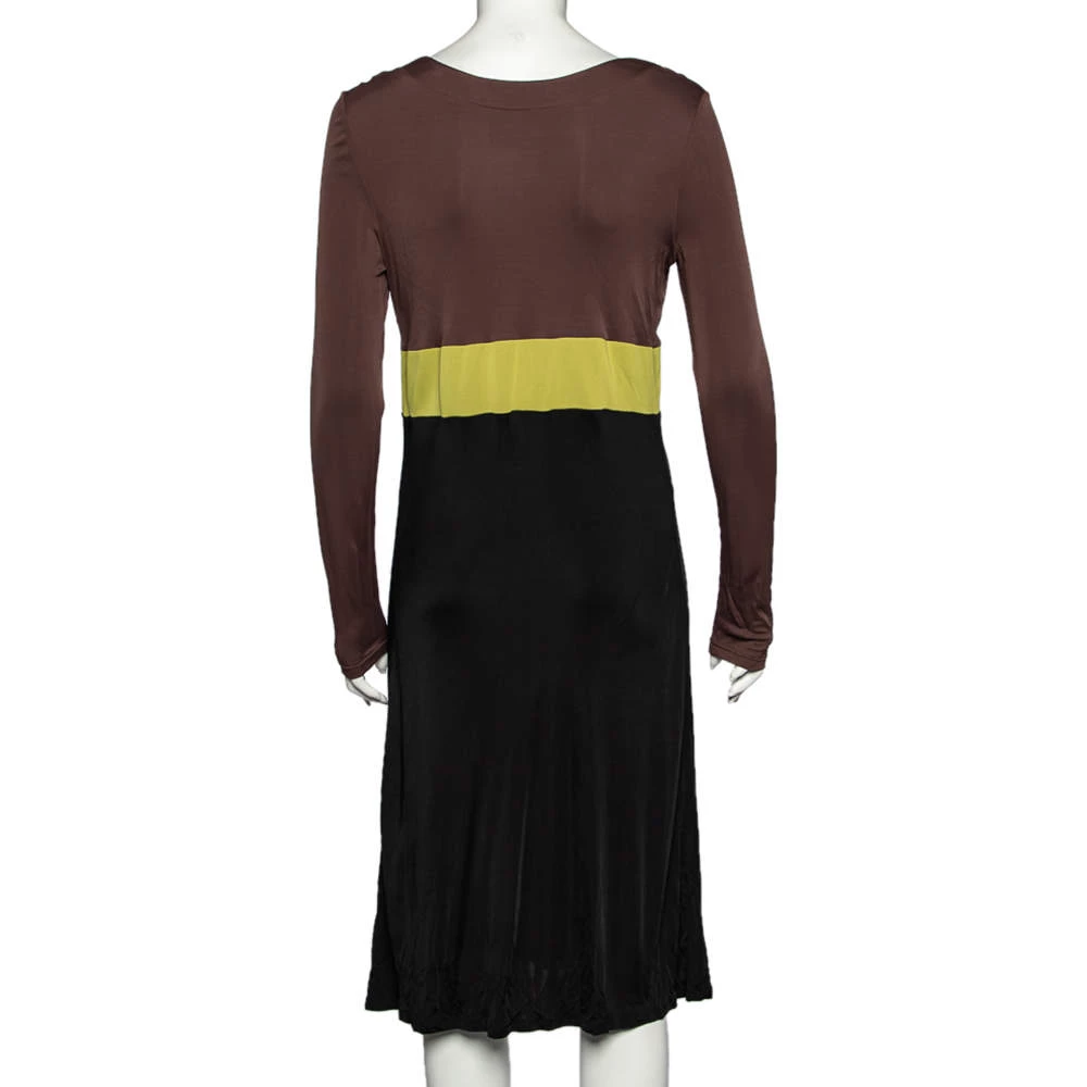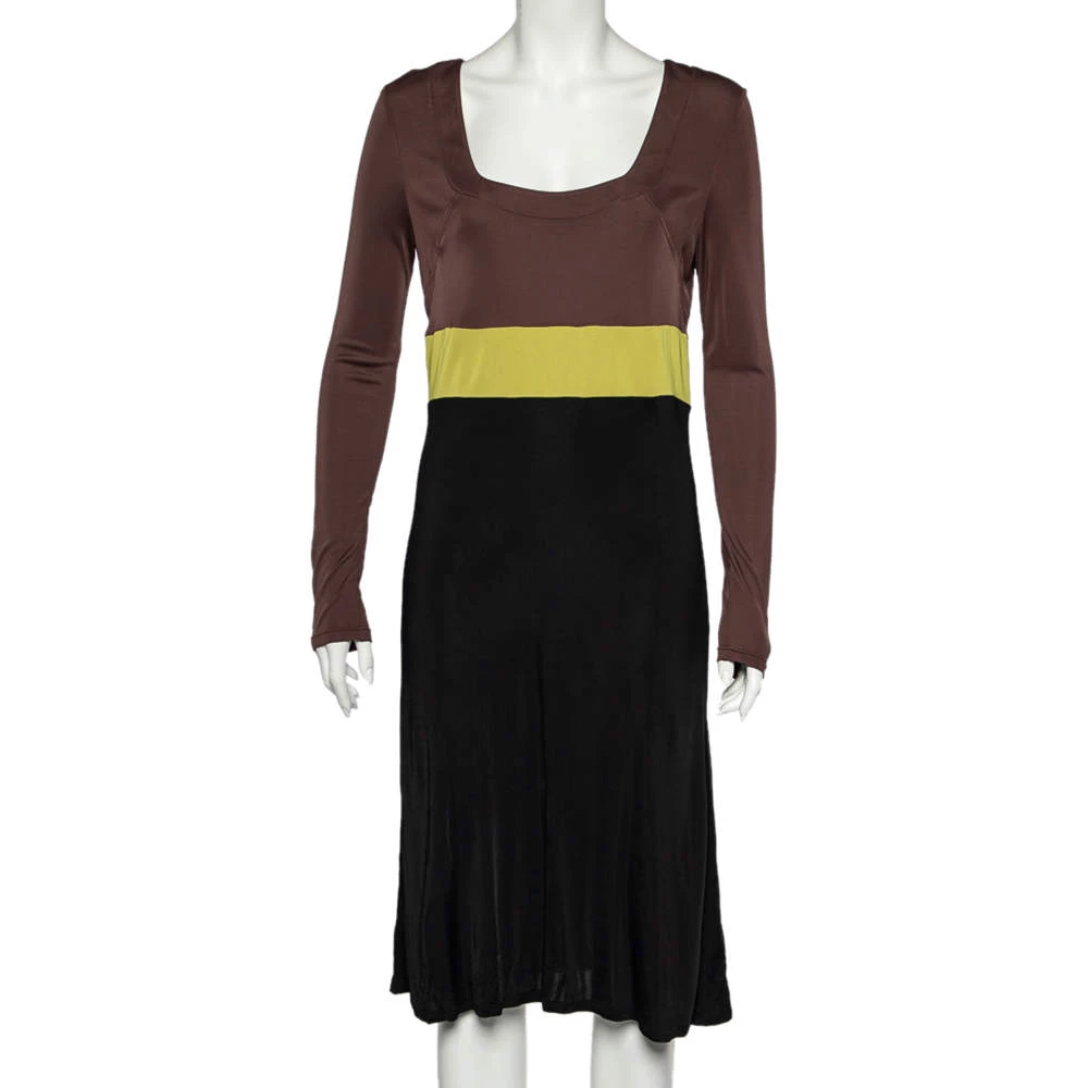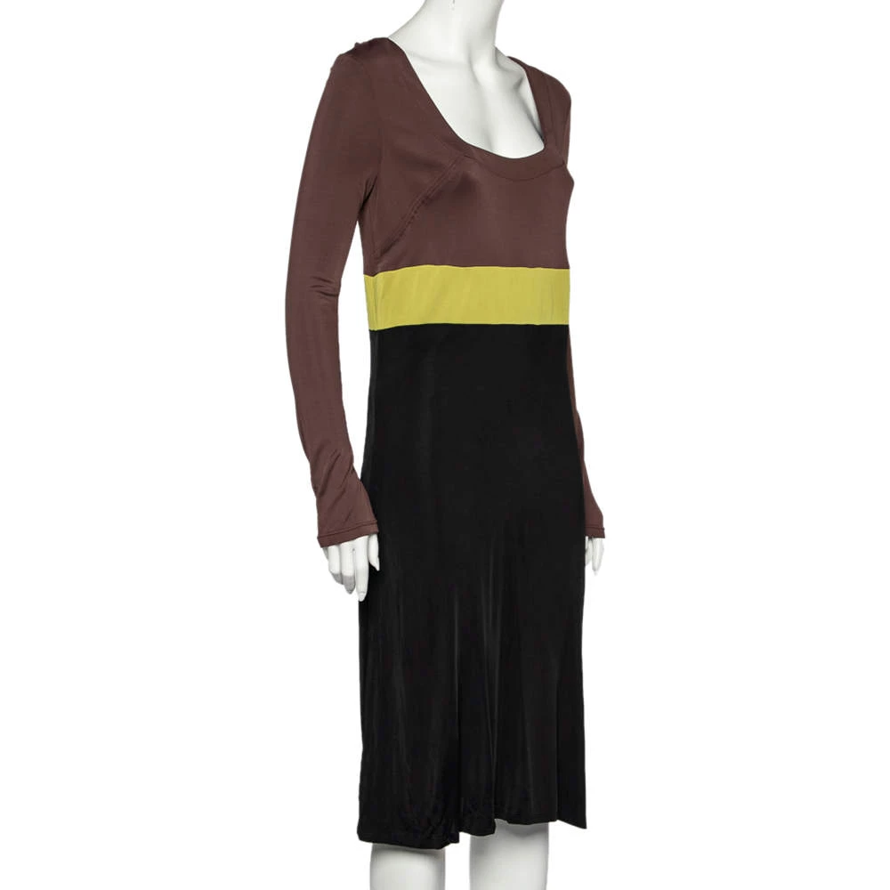 This sheath dress from Emilio Pucci is a must-have accessory. It is created using black color block jersey fabric that adds an edge of color and fun to your attire. It features long sleeves. This dress is a good fit for casual wear.