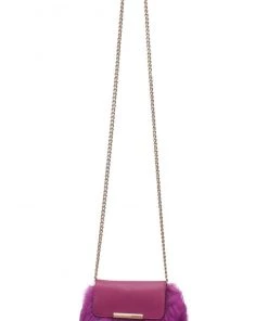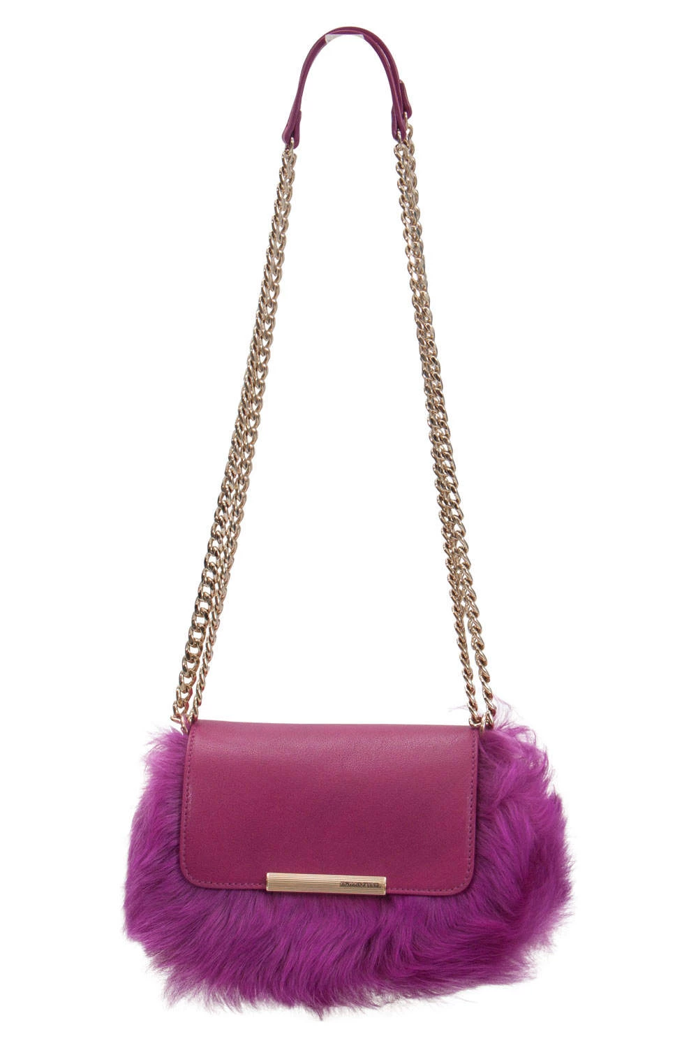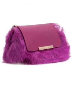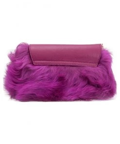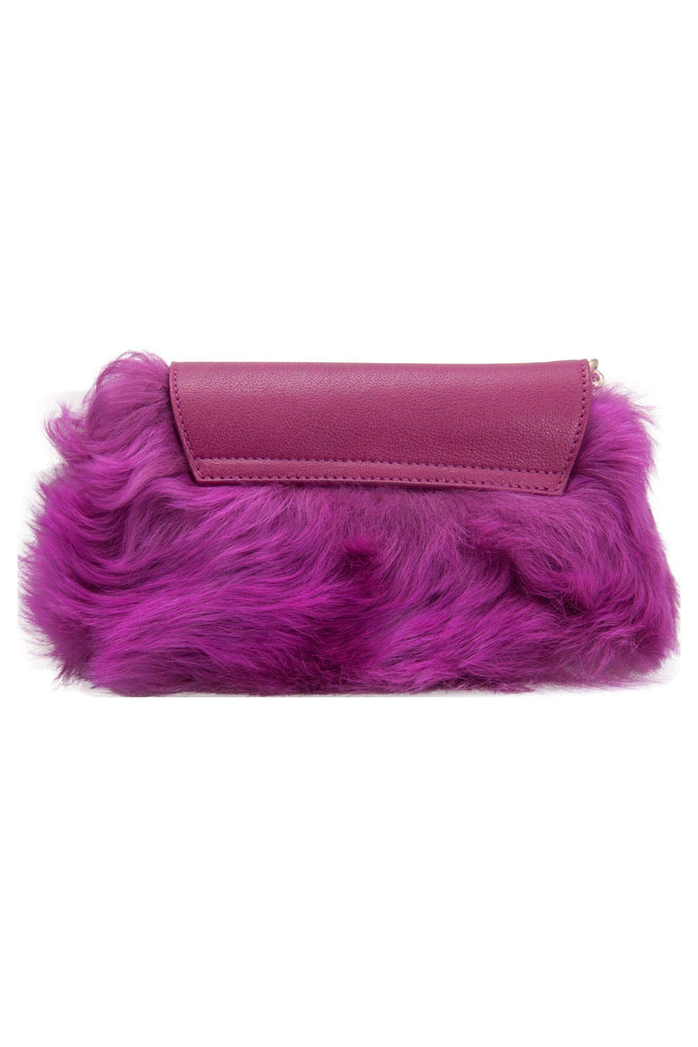 This Emilio Pucci shoulder bag is made from fur and designed with a leather flap, a wristlet and a shoulder chain. The soft bag is lined with satin and it has the brand name engraved on the front metal panel.