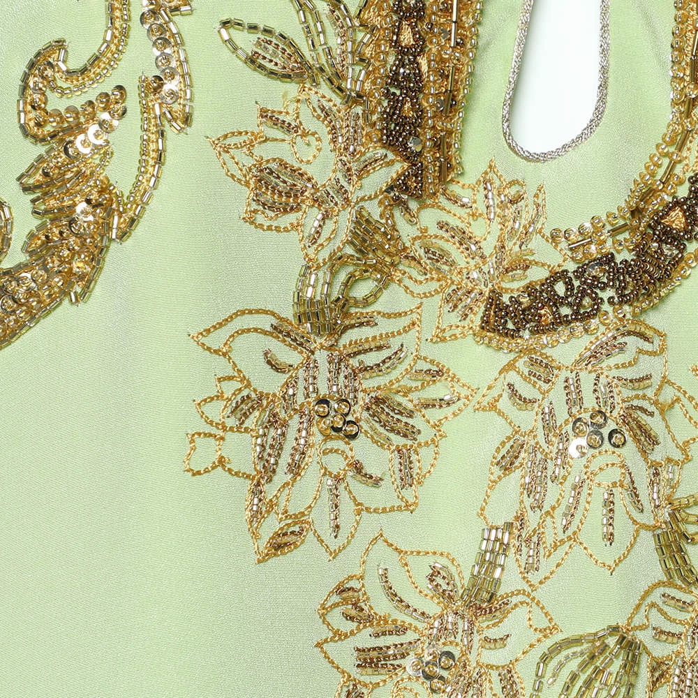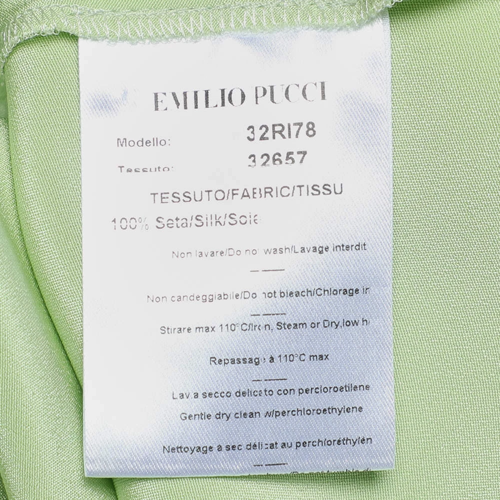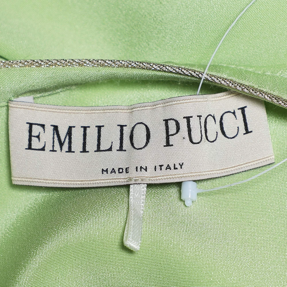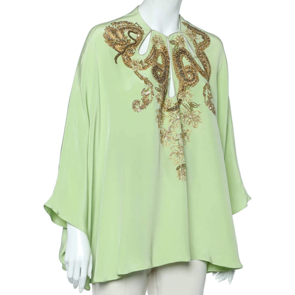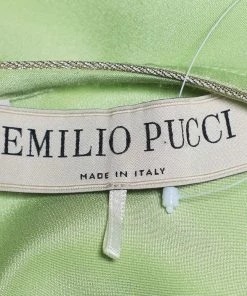 Presented to you by the House of Emilio Pucci, this fabulous top will definitely help you achieve an effortlessly stylish look! It is tailored from green silk fabric, with intricate embellishments on the front. This top is made in one size, granting a very comfortable fit. It is provided with a hook-type closure.