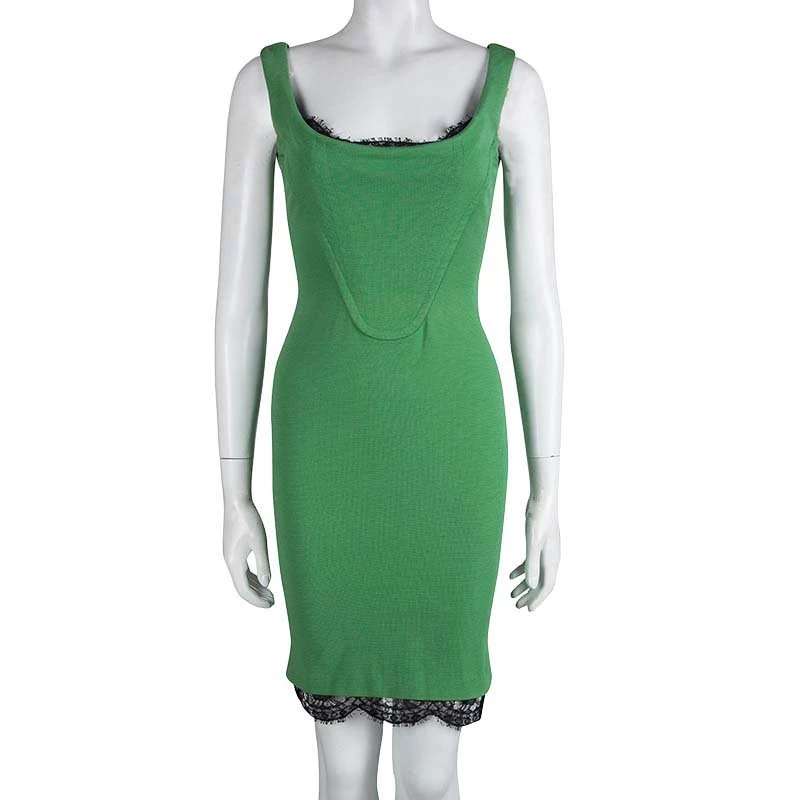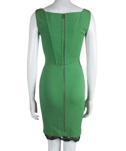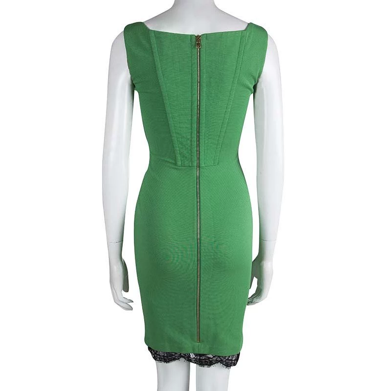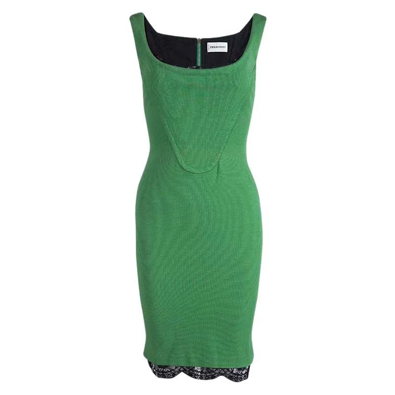 Figure-flattering, this bodycon dress from Emilio Pucci is well-tailored to outline the feminine form. A silver-tone zip runs the length of its back while scalloped lace trim adds to its design. A sleeveless design, it is ideal for a casual day.
