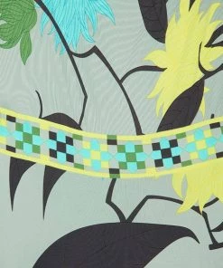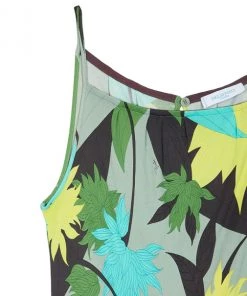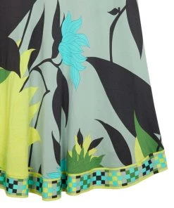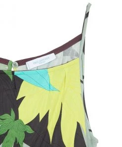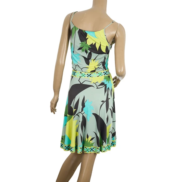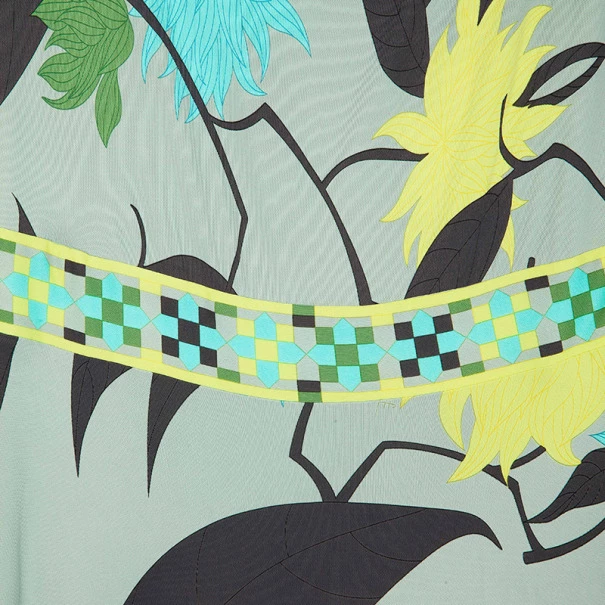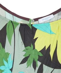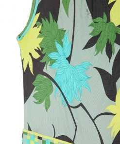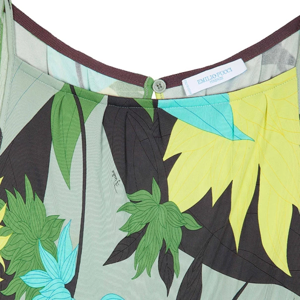 Rely on Emilio Pucci for a fresh and delicate cutting edge designs. This jungle inspired sleeveless dress has Miri leaf print all over with a boatneck. It has a contrasted print on the waist and hemline.