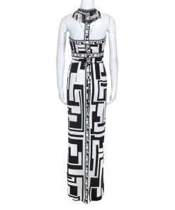 Coming from the globally recognised house of Emilio Pucci, this dress is a treasure and a wardrobe classic. Dress up for an event in this fantastic black dress designed just for you. Crafted from 100% silk, this monochrome printed dress has a lovely silhouette, it features a beaded collar, zip closure, and the hemline touches the floor.