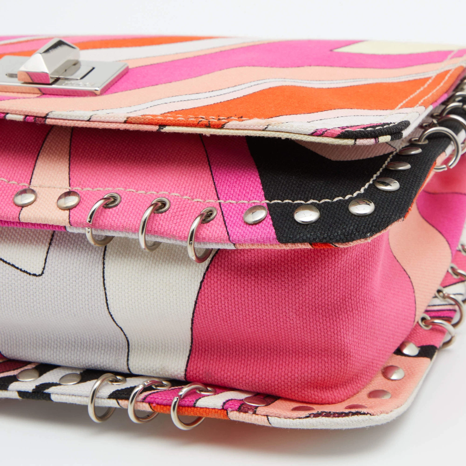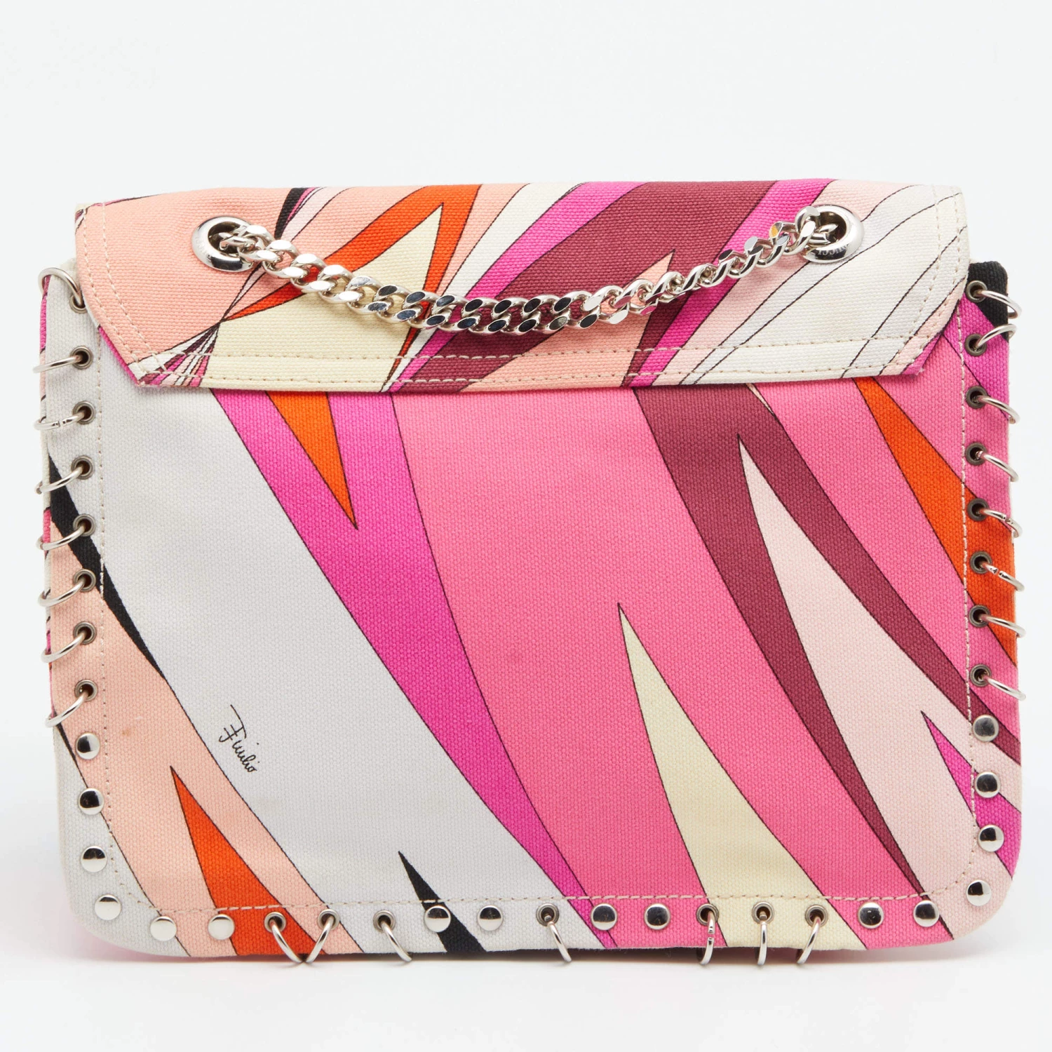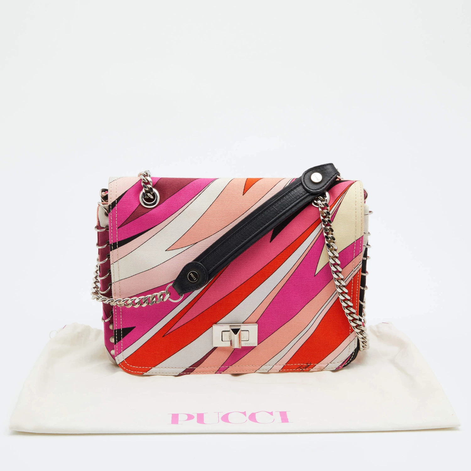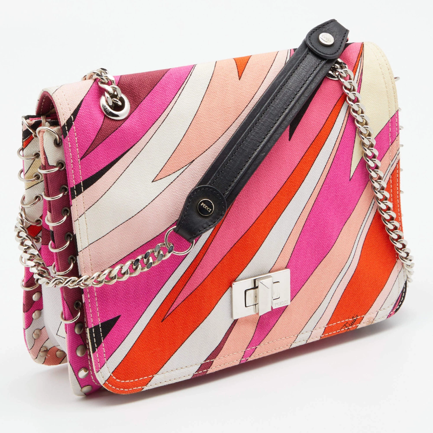 This uber-chic Marquise shoulder bag from Emilio Pucci will be a valuable addition to your collection. Crafted from canvas, the bag features a chain strap with a leather shoulder rest along with silver-tone studs and ring detailing on the exterior. The turn-lock closure opens to a well-sized interior that will fit all your daily essentials.