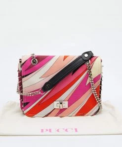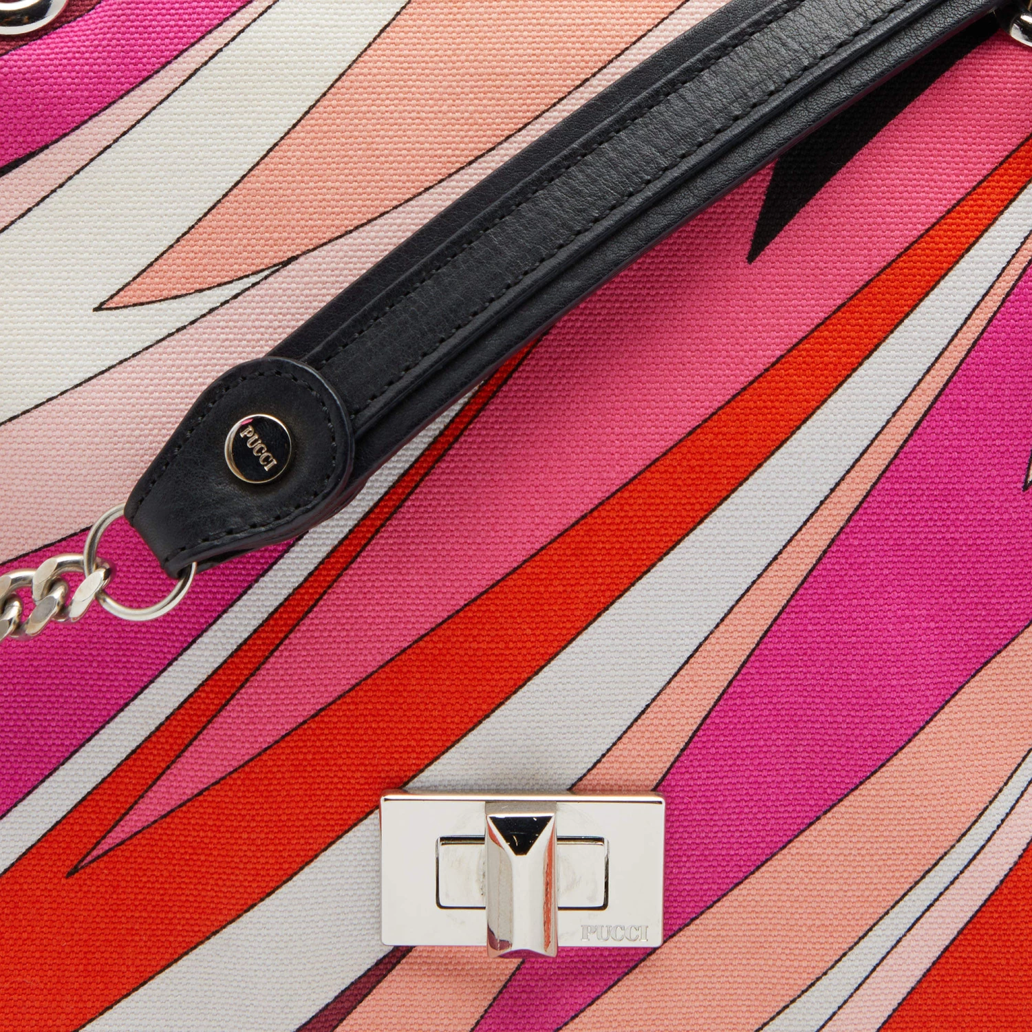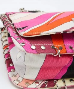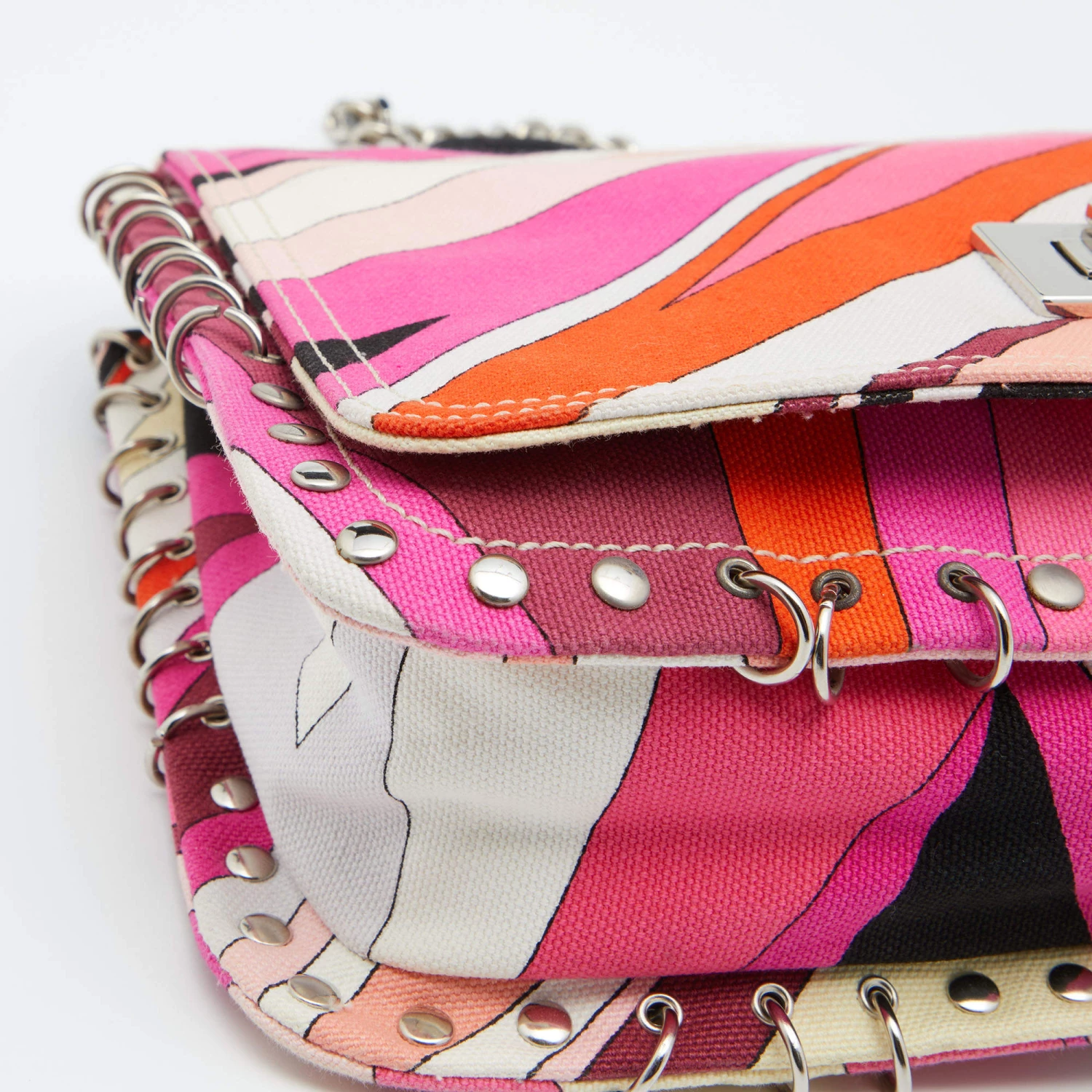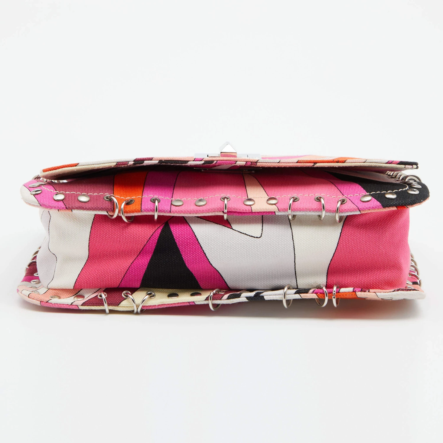 This uber-chic Marquise shoulder bag from Emilio Pucci will be a valuable addition to your collection. Crafted from canvas, the bag features a chain strap with a leather shoulder rest along with silver-tone studs and ring detailing on the exterior. The turn-lock closure opens to a well-sized interior that will fit all your daily essentials.