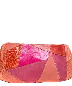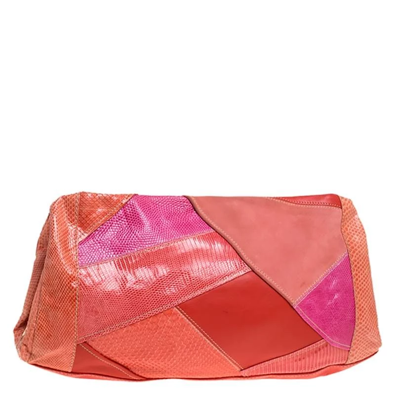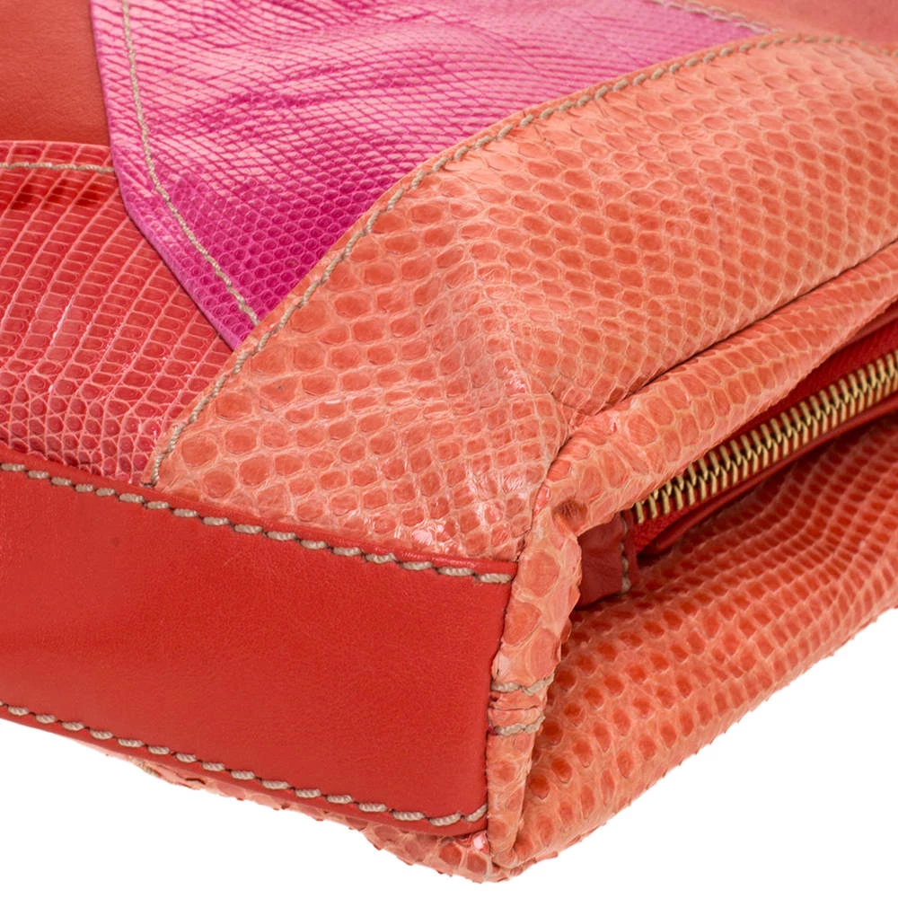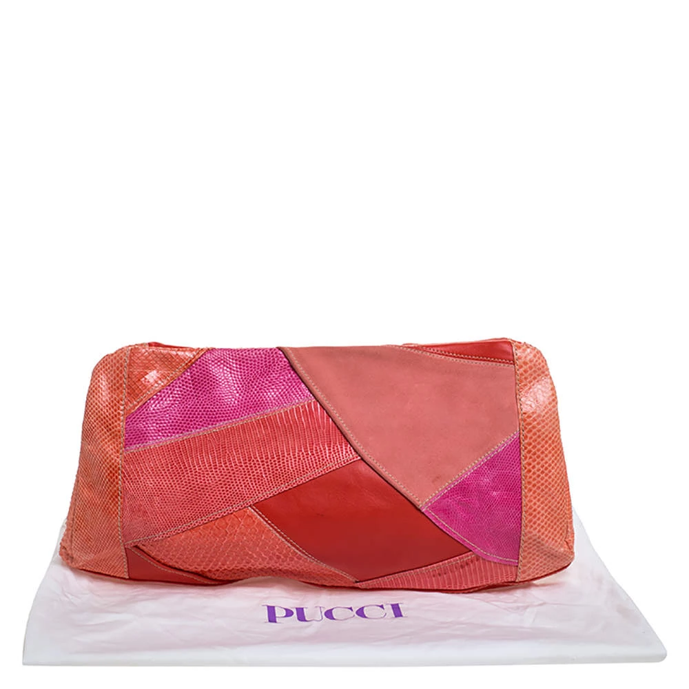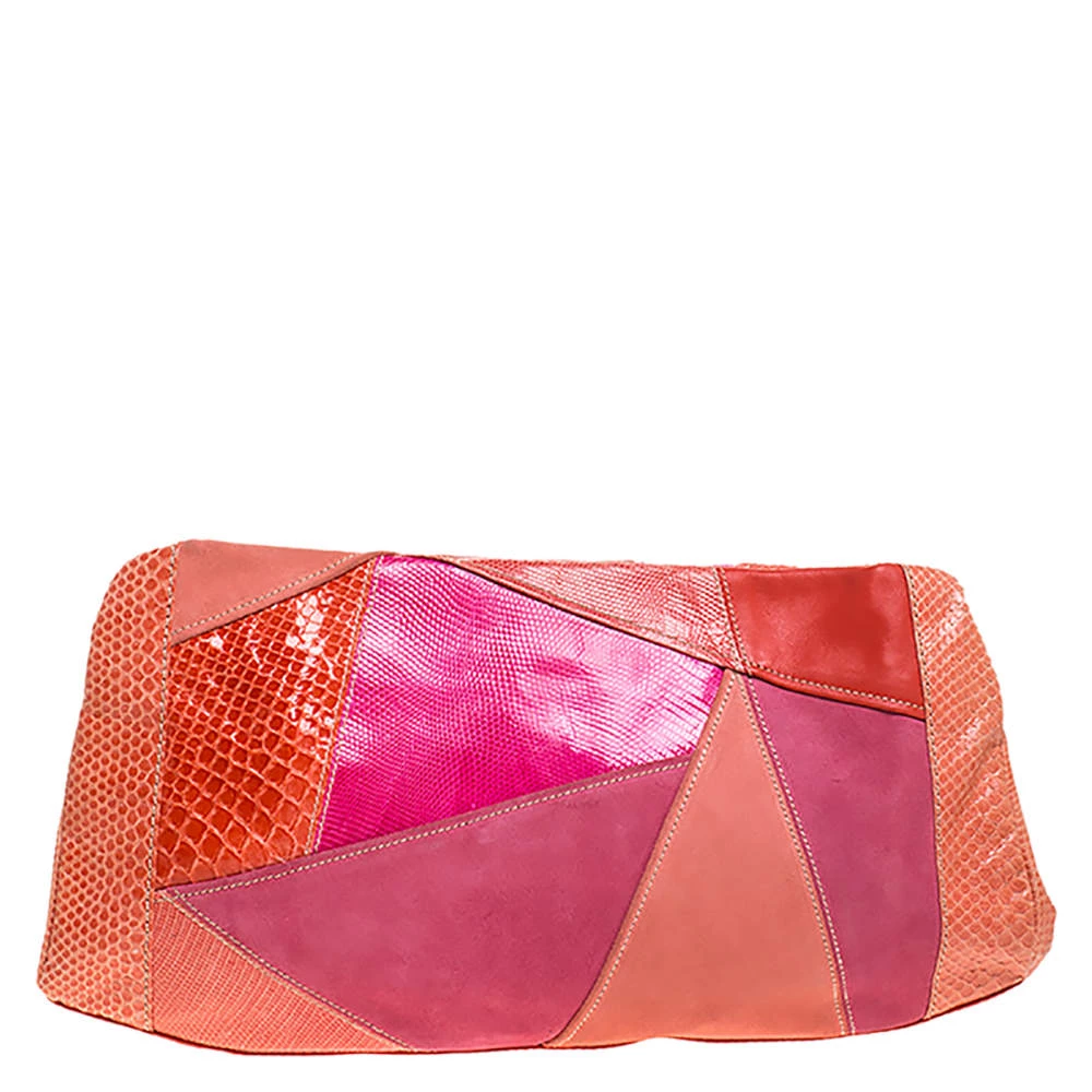 Emilio Pucci has exclusively crafted this elegant clutch for fashionistas like you. Crafted in Italy from python, lizard, suede and leather, it flaunts lovely multicolored exterior. It has a nylon interior with a zip pocket and enough space for all your party essentials. It is finished with gold-tone hardware.