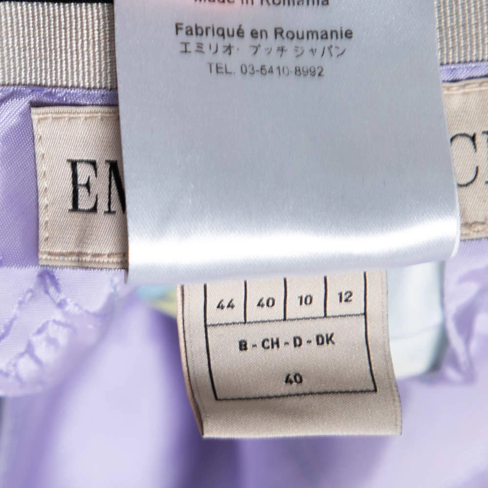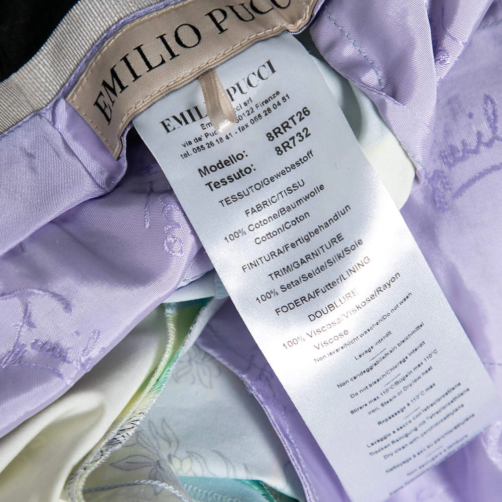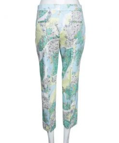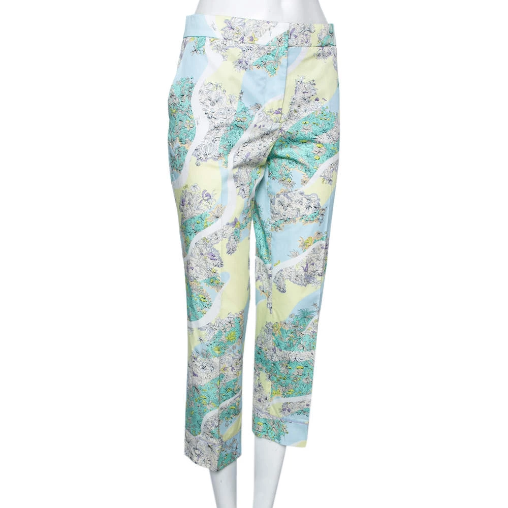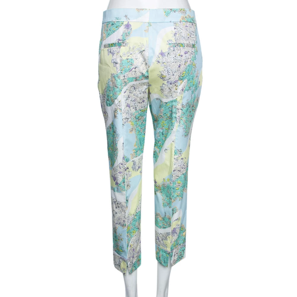 The right option for summer and springtime, these Emilio Pucci trousers flaunt a lovely floral print. They are made using cotton and have a tapered leg silhouette. Wear the multicolored pants with a chic pastel-hued top and matching accessories for a sublime look.