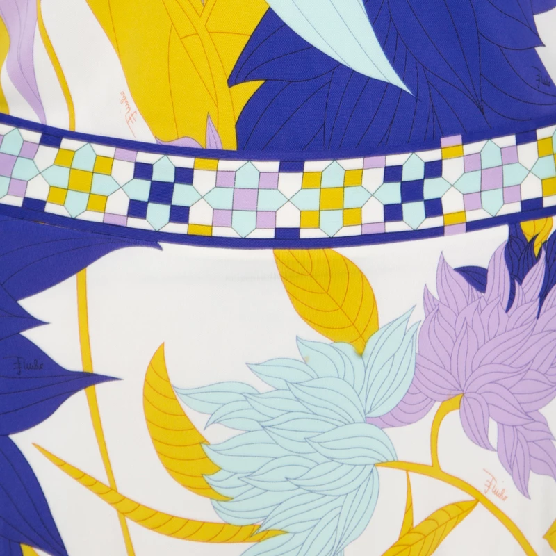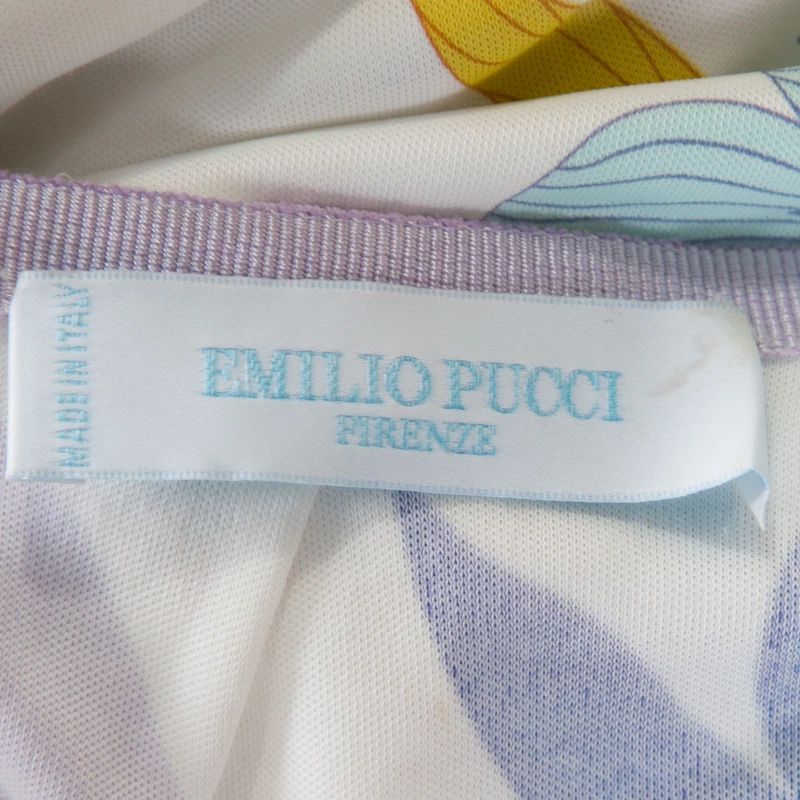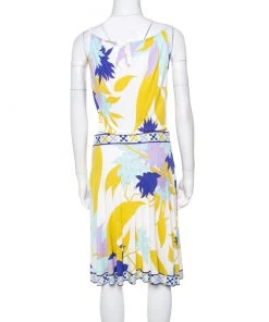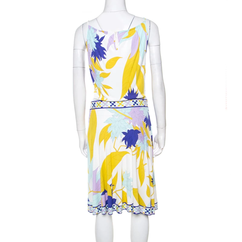 Emilio Pucci sleeveless dress is crafted into a sleeveless style. It features a multicolored floral print all over with a short length. Pair this with colored sandals for a casual and fun look.