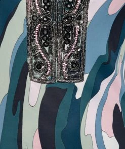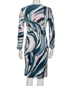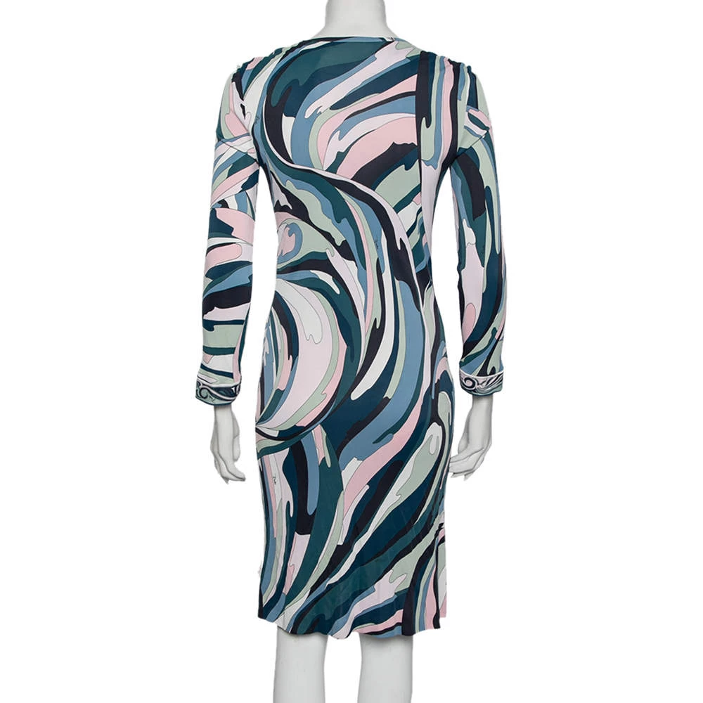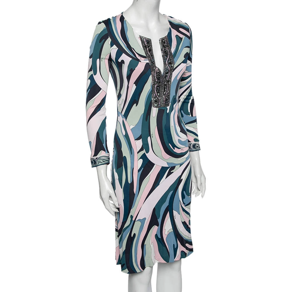 Coming from Emilio Pucci is this multicolored long sleeve dress that is truly stunning in its design. Crafted from fine materials, it features an embellished patch on the front and has a flattering silhouette. Pair it with high heels and minimal jewelry for a sophisticated look.