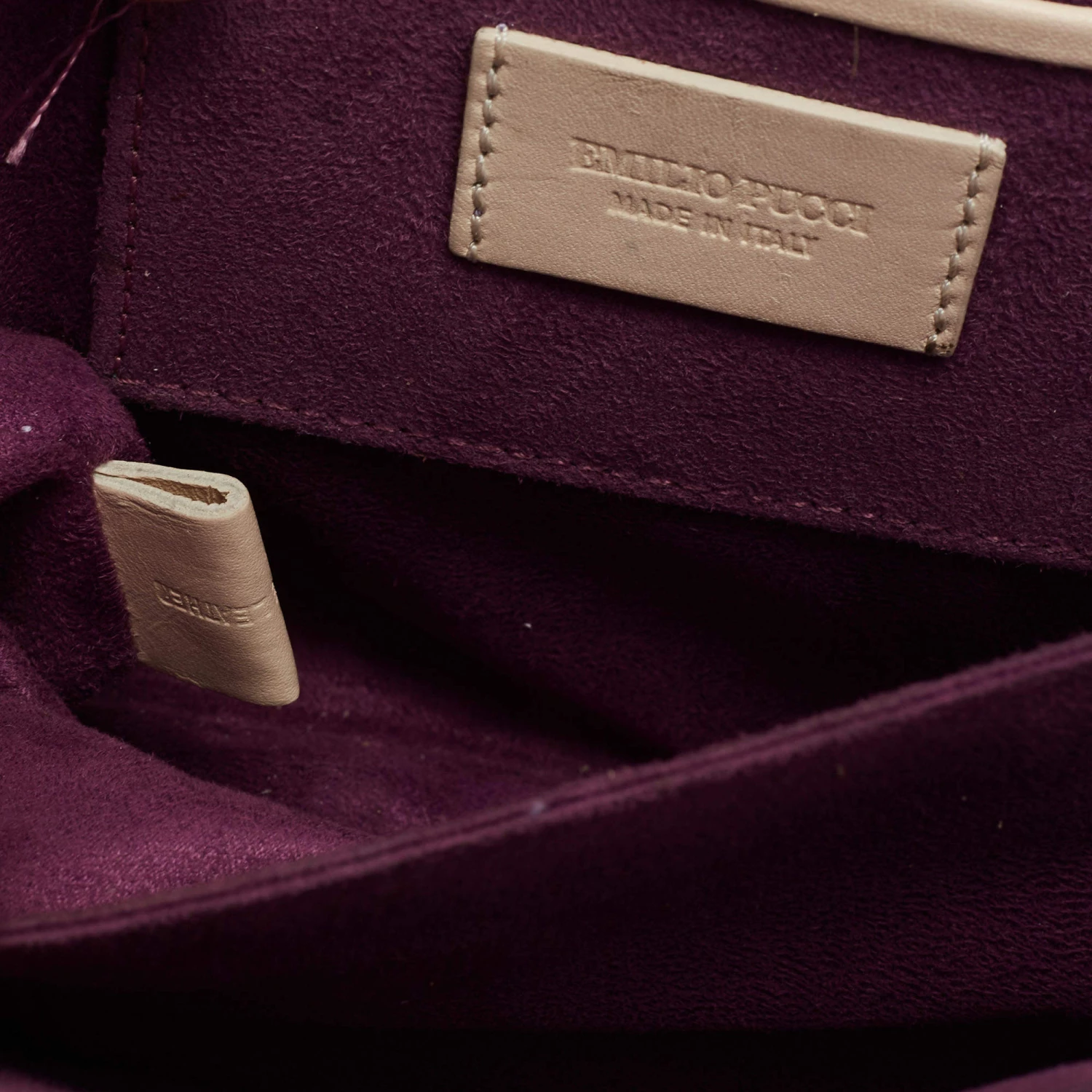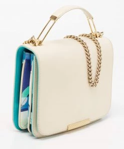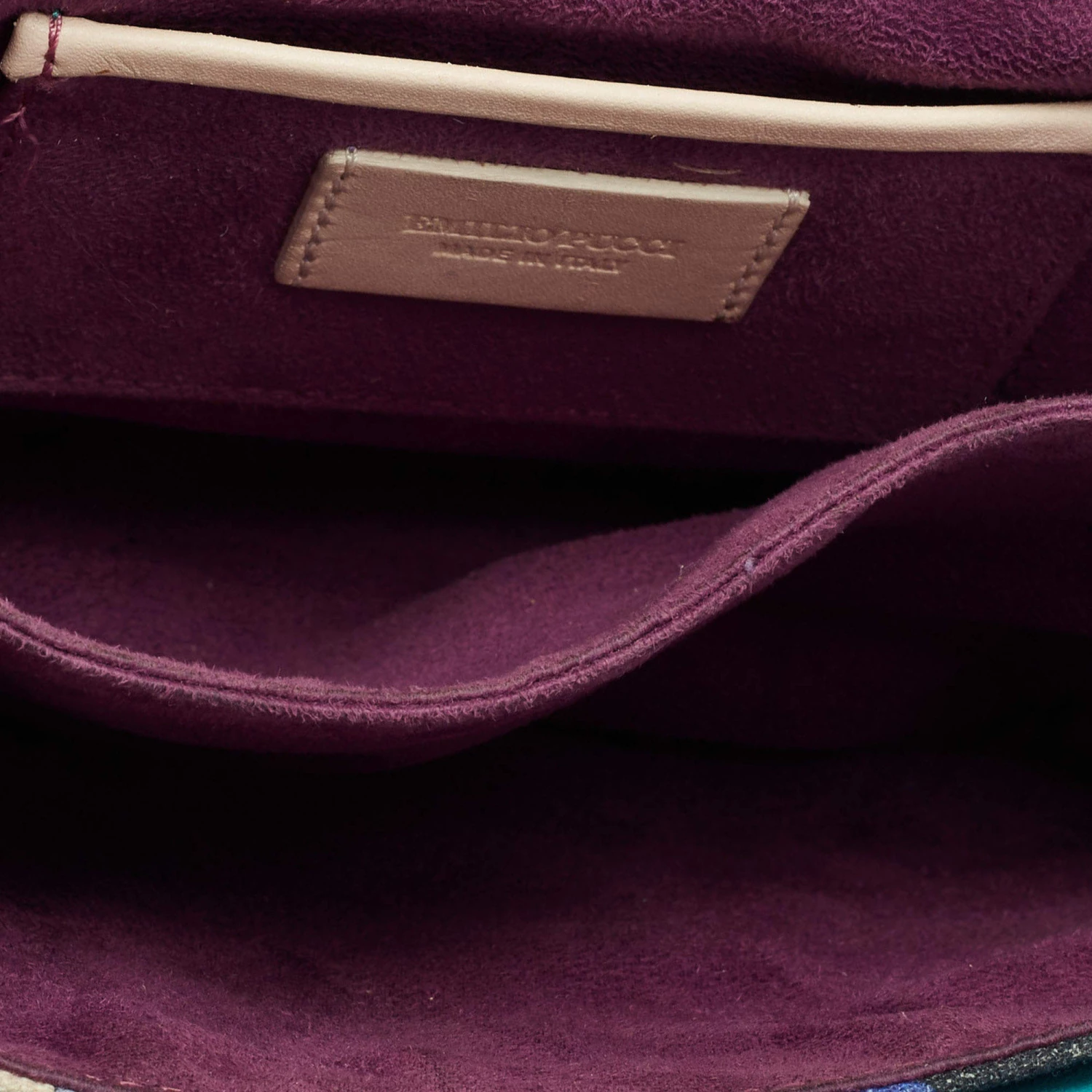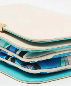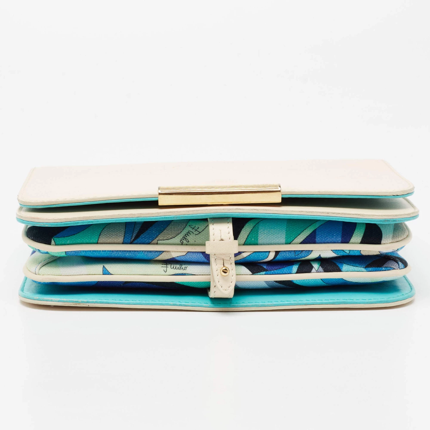 This Emilio Pucci bag is a timeless piece that can last you season after season. This bag is made of leather as well as printed canvas and is sized to house all the things you need. It has a top handle, a long shoulder chain, and lined compartments.