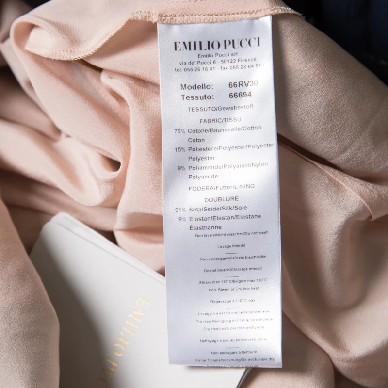 - Fabric: Shell: 76% Cotton, 15% Polyester, 9% Polyamide ( Lining: 91% Silk, 9% Elastane )