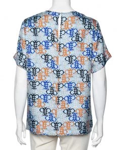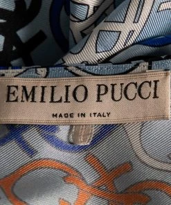 This lovely silk top from Emilio Pucci is just what you need for those casual day outings. It comes with a multicolored logo print all over and is short-sleeved. Pair it with trousers or tuck it into skirts to elevate your stylish look.