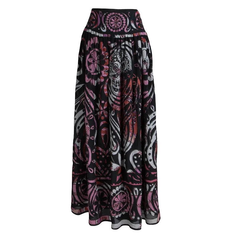 This embroidered maxi skirt from Emilio Pucci exudes a sense of offbeat femininity. Decorated with embroidered floral pattern, this cotton and silk-blend skirt is gathered to highlight the high-waist silhouette. It is secured with a concealed side zipper.